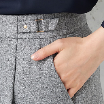 ターンとウエストタブデザインで、気になる部分をさりげなくカバーして、自然にスタ