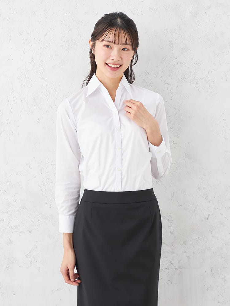 【形態安定】長袖ブラウス STOVELMASON WHITE リクルート 白 レギュラー 通年【レディース】