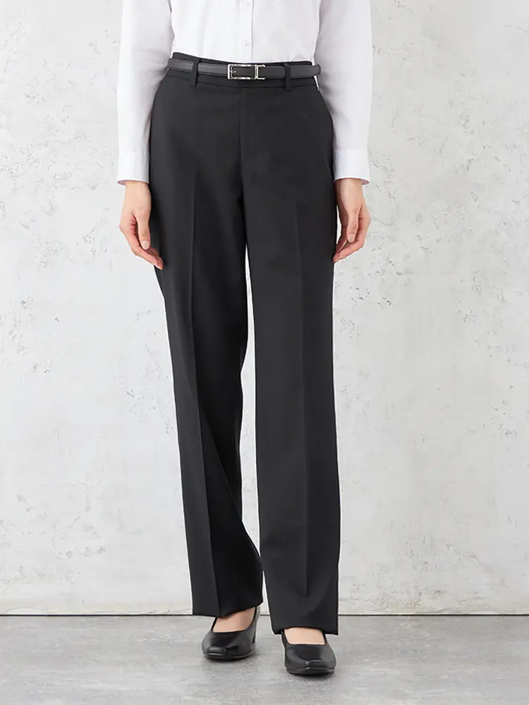 ストレートパンツ with 黒シャドーストライプ ウォッシャブル 2WAYストレッチ【レディース】