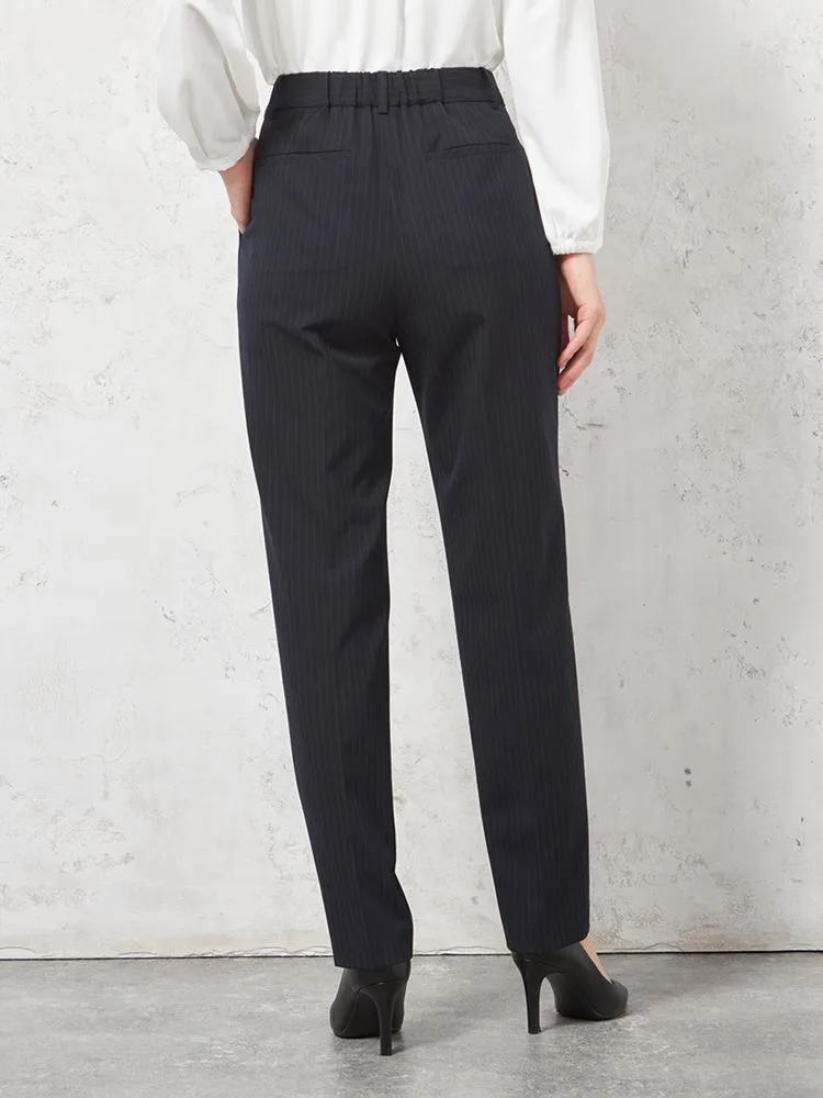 ストレートパンツwith黒シャドーストライプウォッシャブル2WAYストレッチ【レディース】