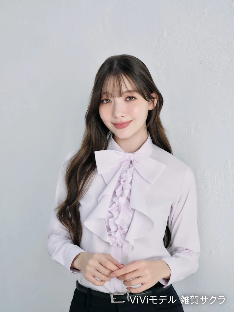 取り外し可能なフリル&リボン付きで、シーンや気分で4 通りの着こなしができる万能ブラウス。