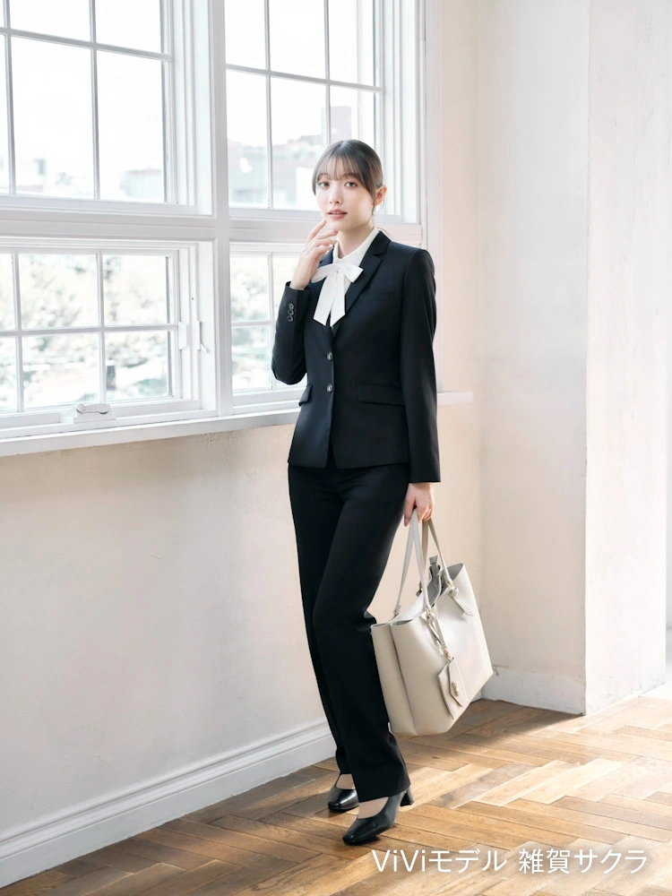 取り外し可能なリボン付きで、気分やコーディネイトによって2通りの着こなしが楽しめるレギュラーブラウス。