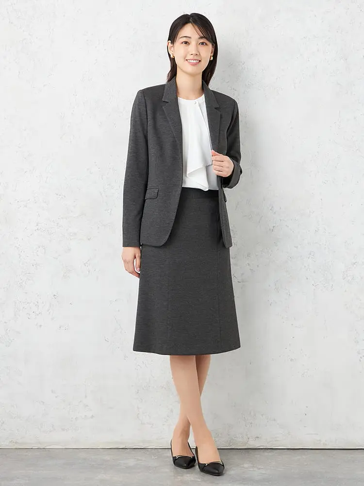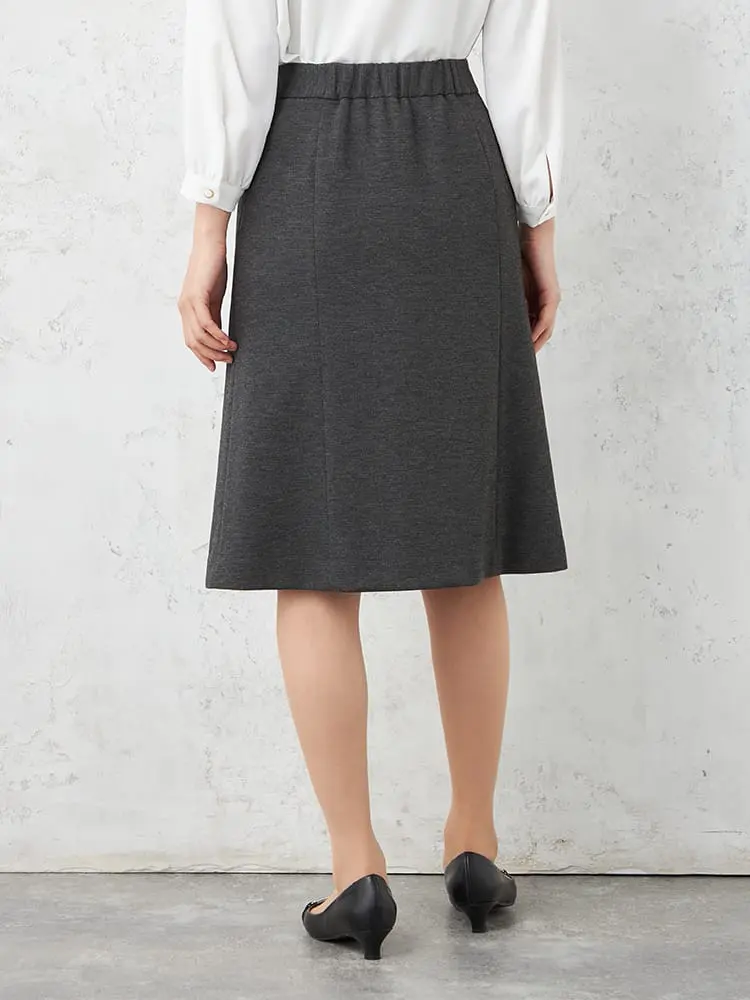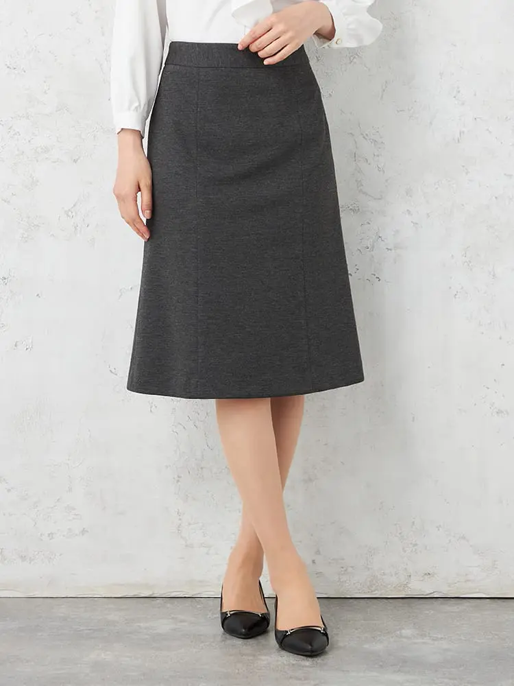 【SOFFICE】2WAYニットカルゼフレアスカート 無地 ストレッチ 秋冬(C.グレー)