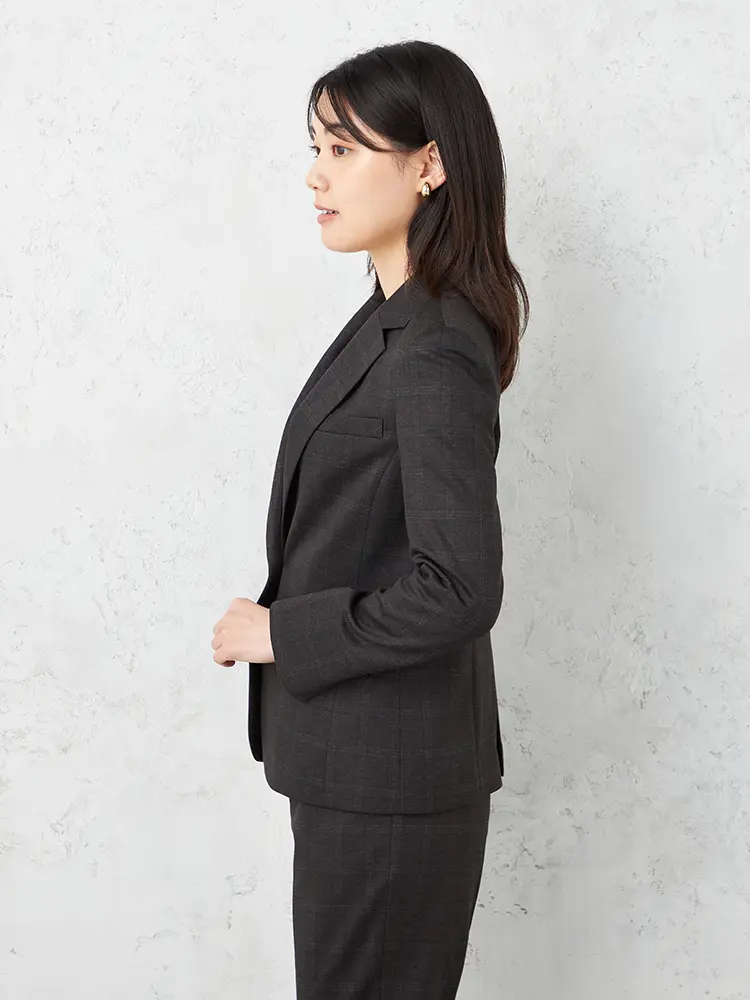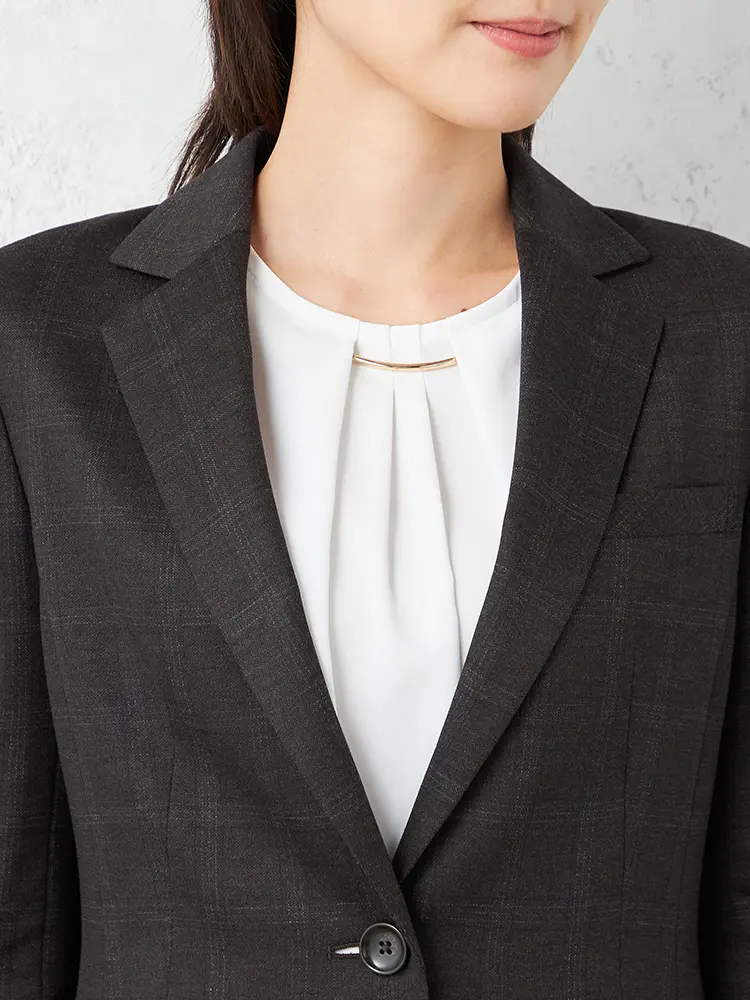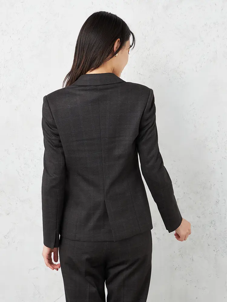 ウィメンズジャケット通年グレーストライプストレッチ1つボタンジャケット【レディース】