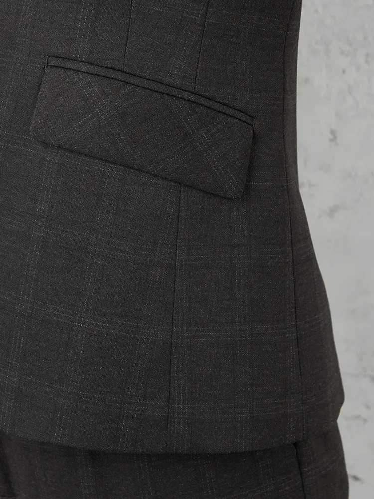 コーディネートをトラディショナルに仕上げるチェック柄の総裏仕立て仕様のジャケット。