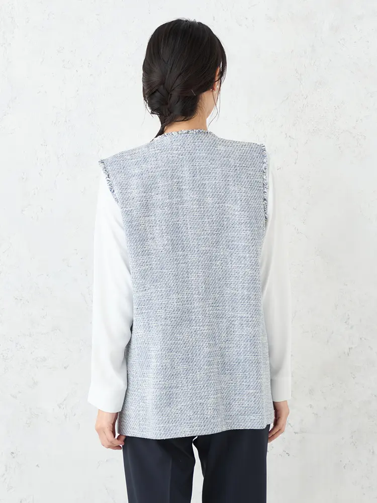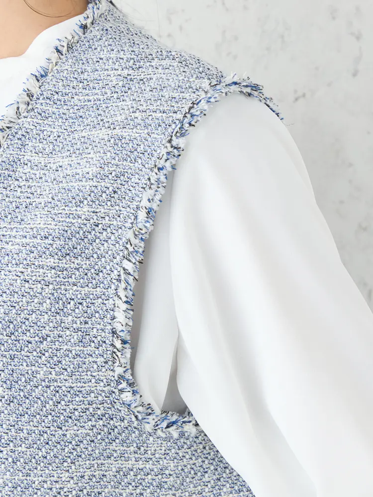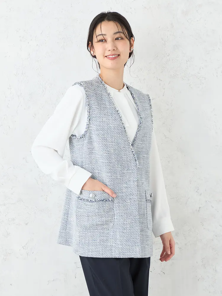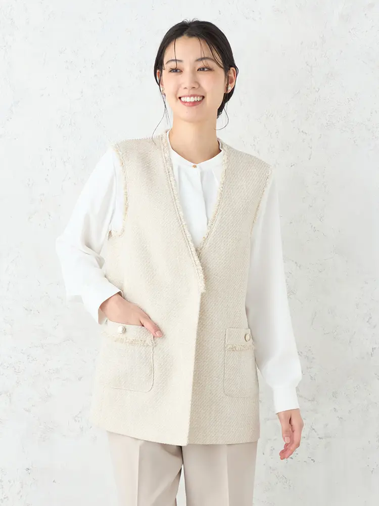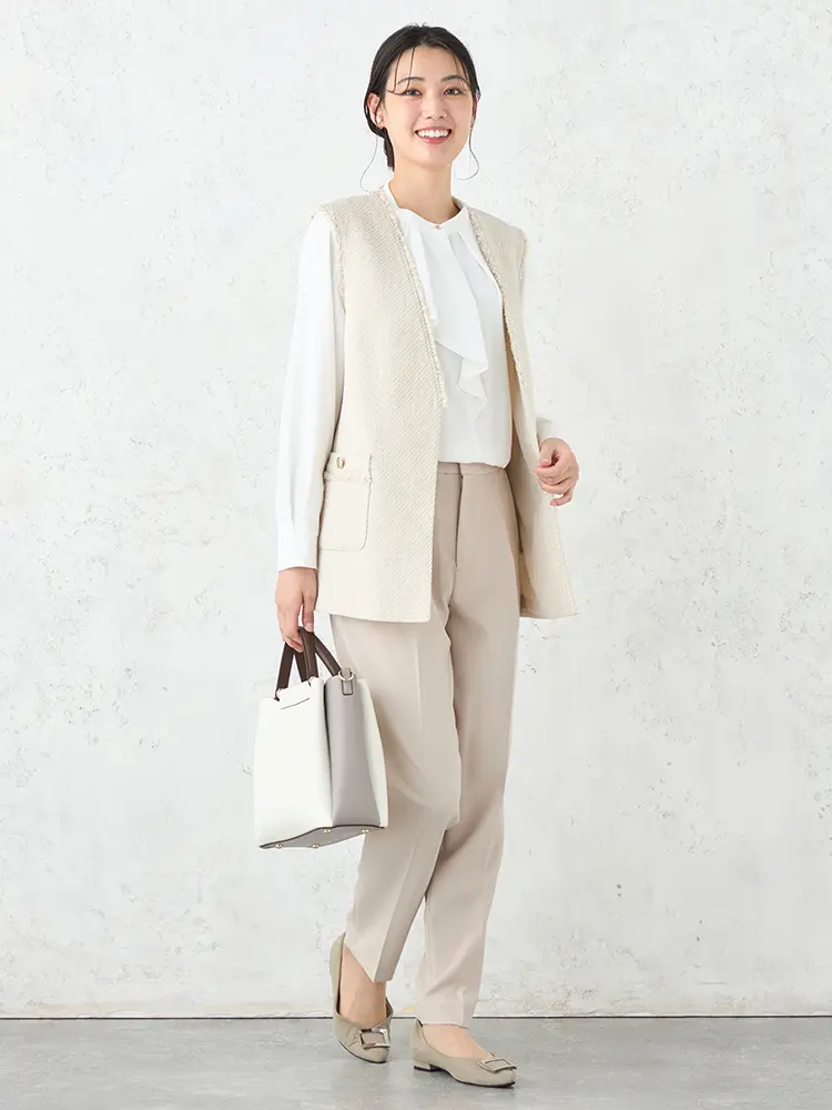 ツイードジレ、ブラウス、パンツの豪華3点セット。