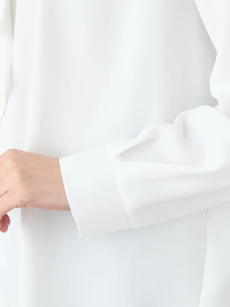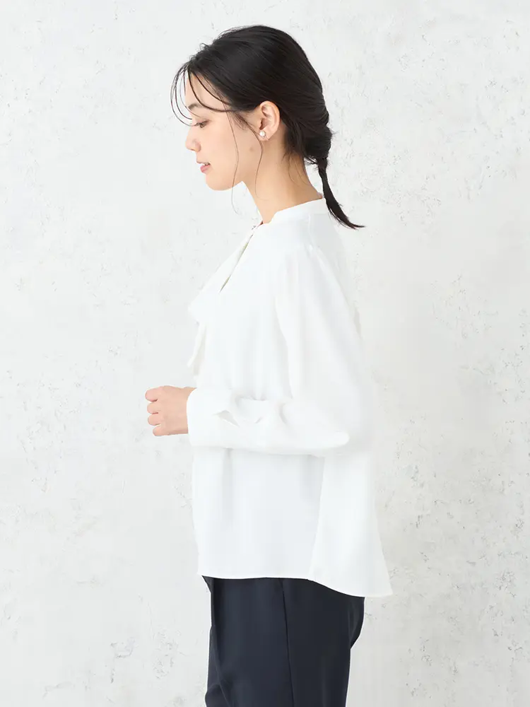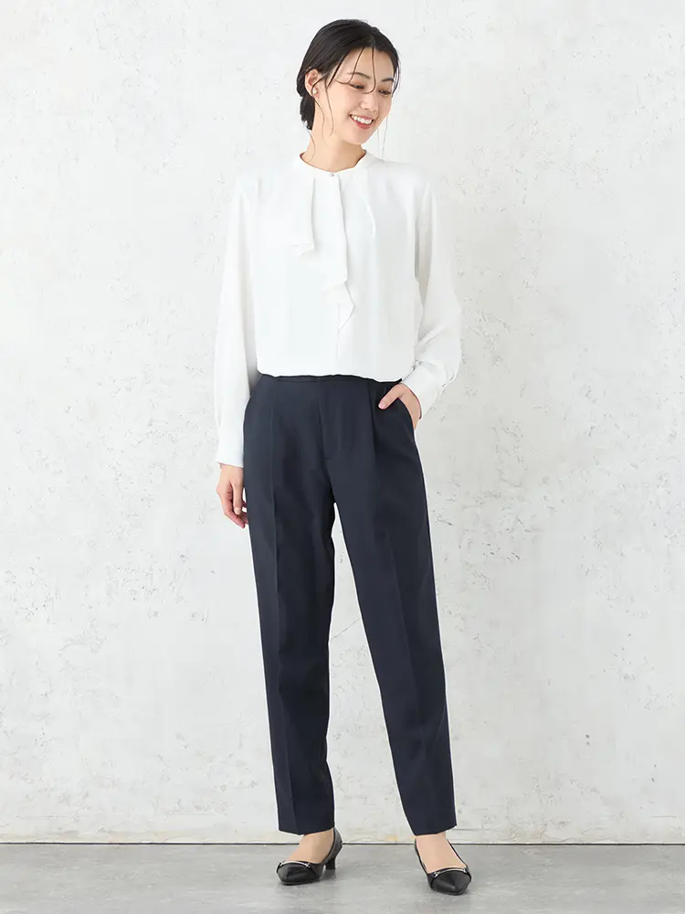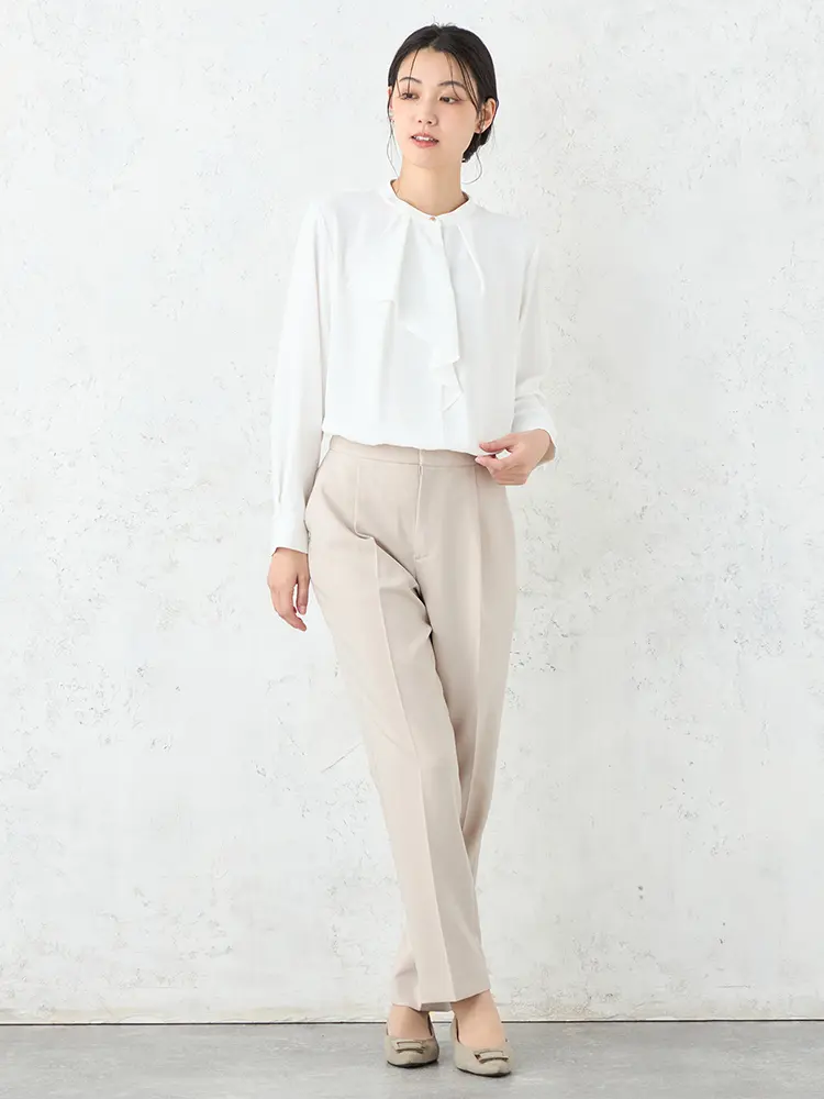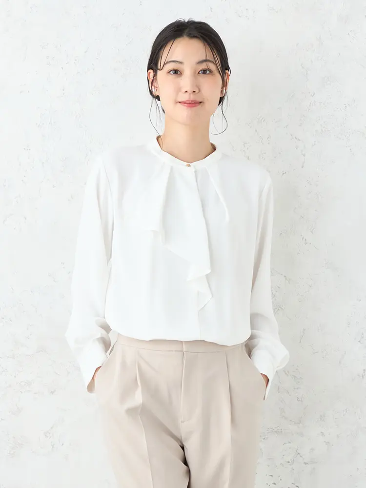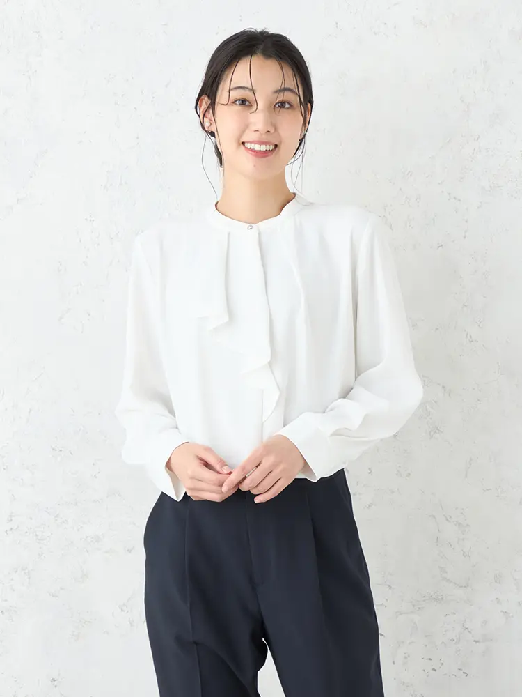 新作のフリルブラウスはセットアップにはもちろん、単品でも華やかに着回せます。