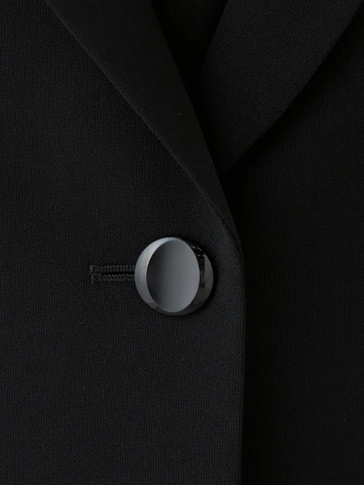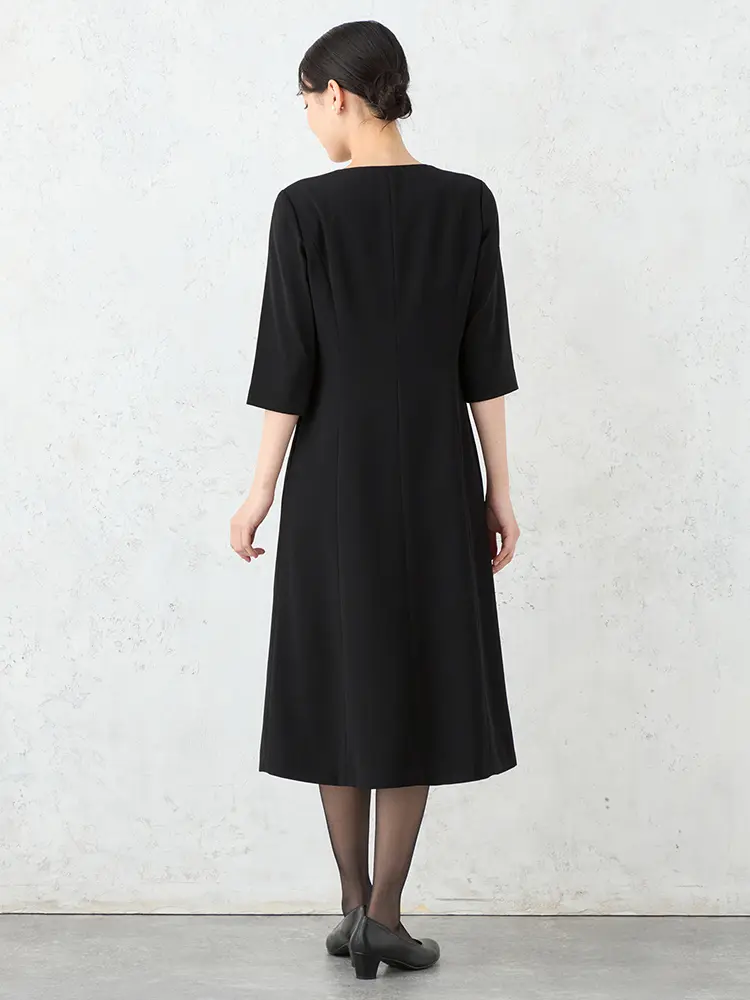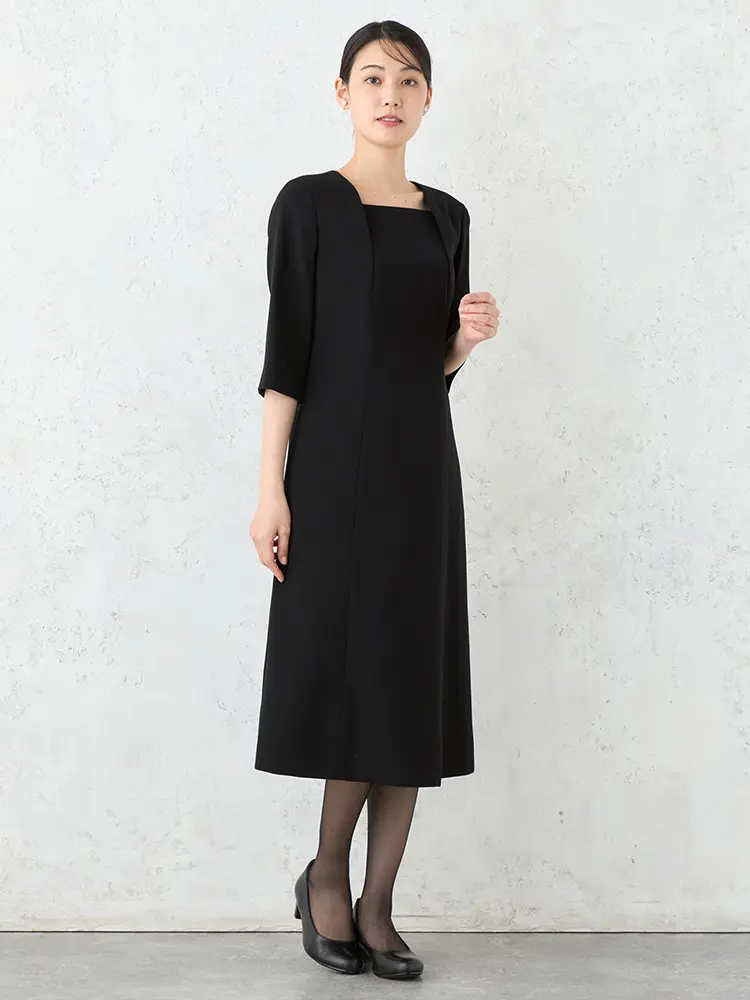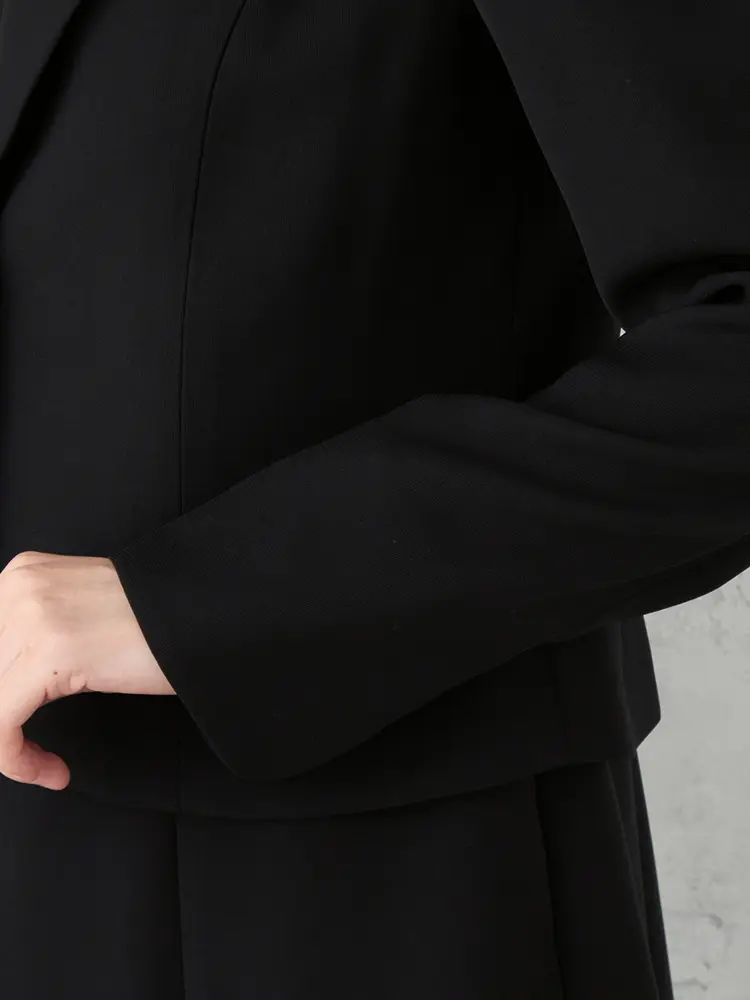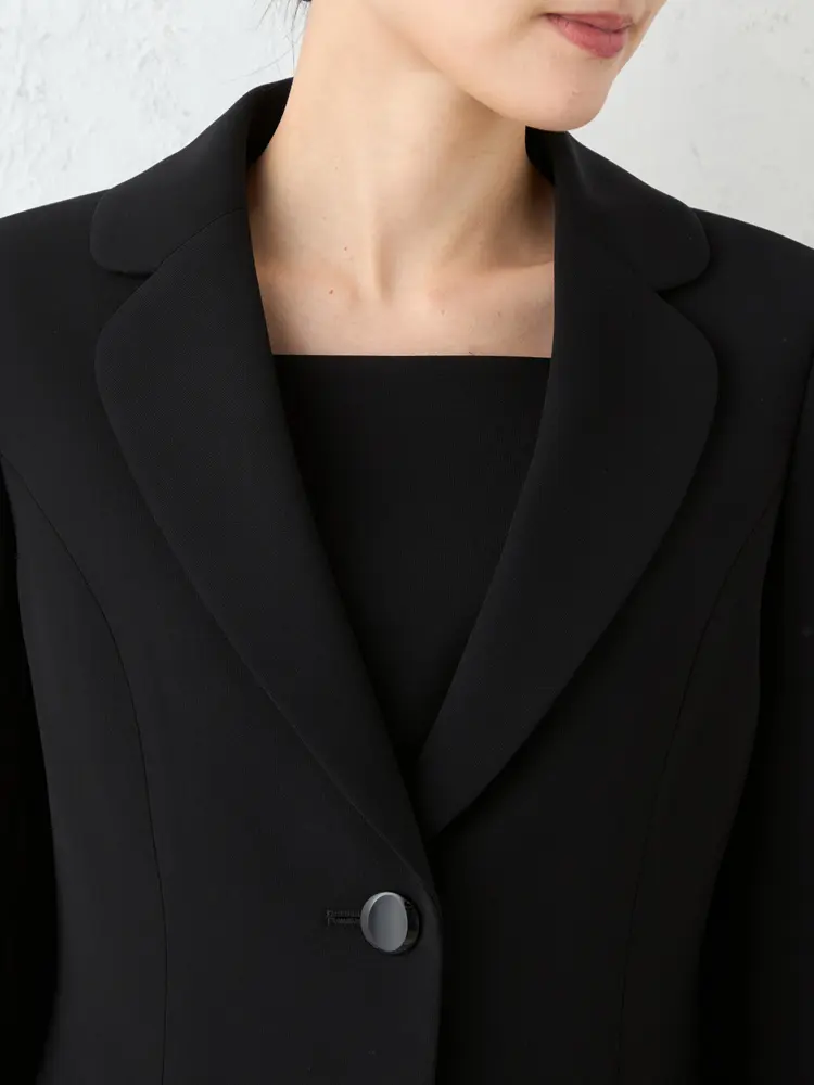 丸みのある優しい印象のテーラードジャケットと、Aラインワンピースの洗練されたセットです。
