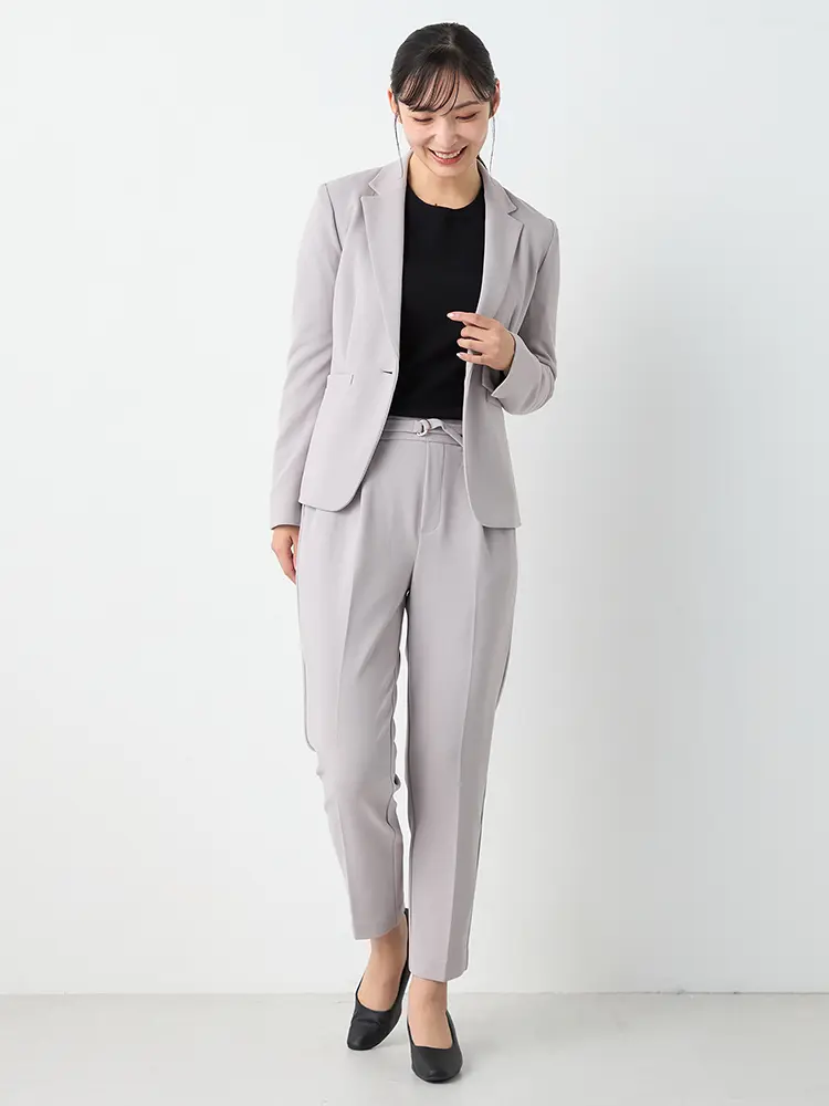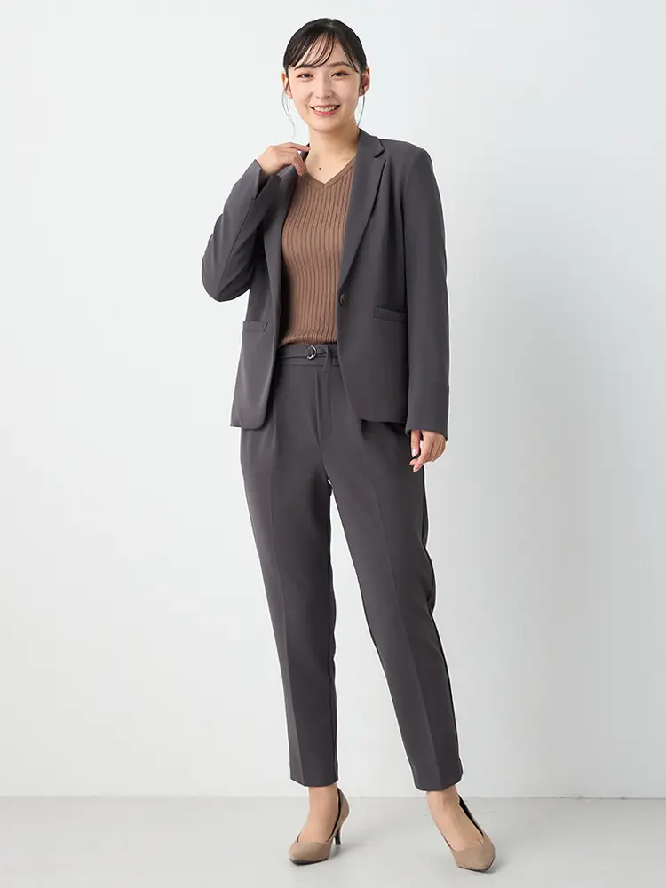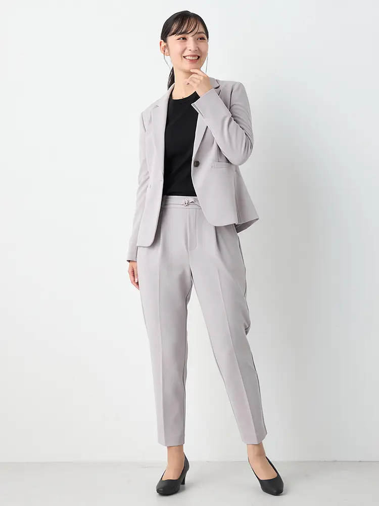 ハイストレッチテーラード1つボタンジャケットパンツセット 秋冬(C.グレー)