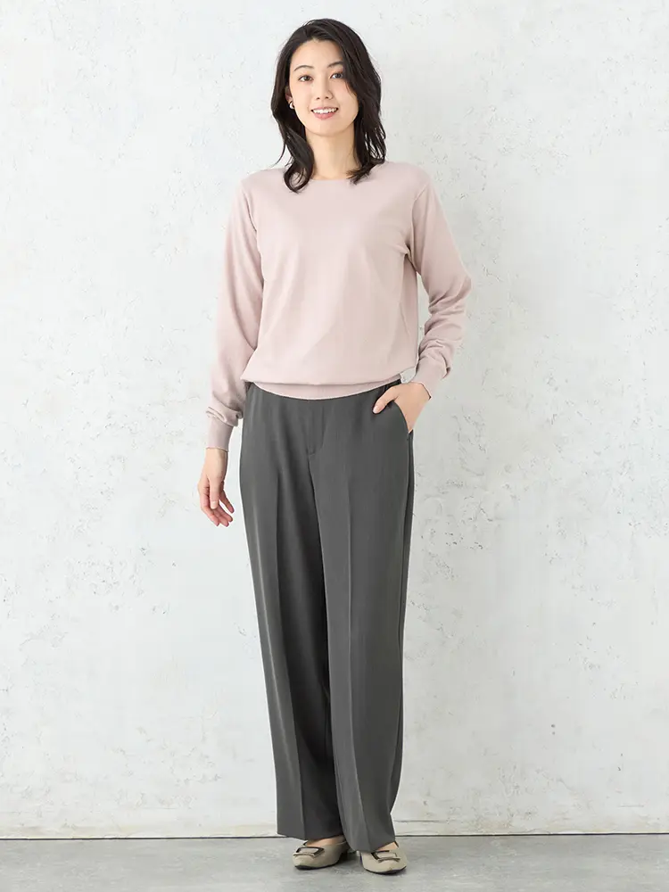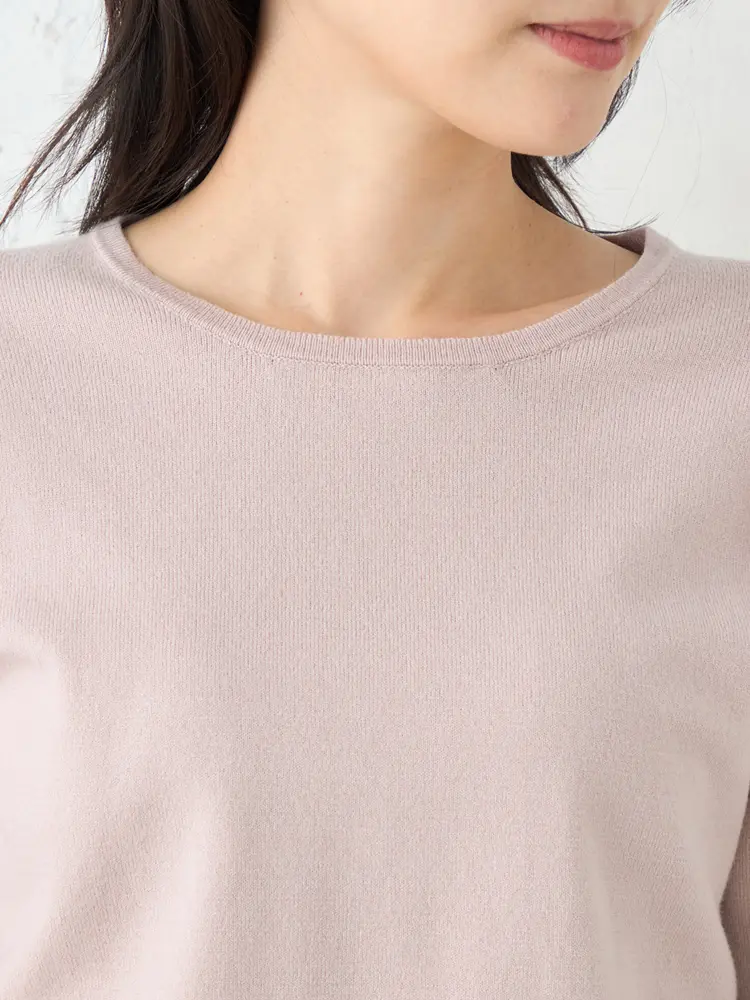 【SOFFICE】抗ピルクルーネックニット カットソー ウォッシャブル 放電 抗ピリング 秋冬(ピンク)