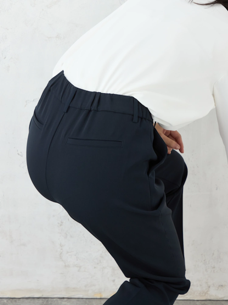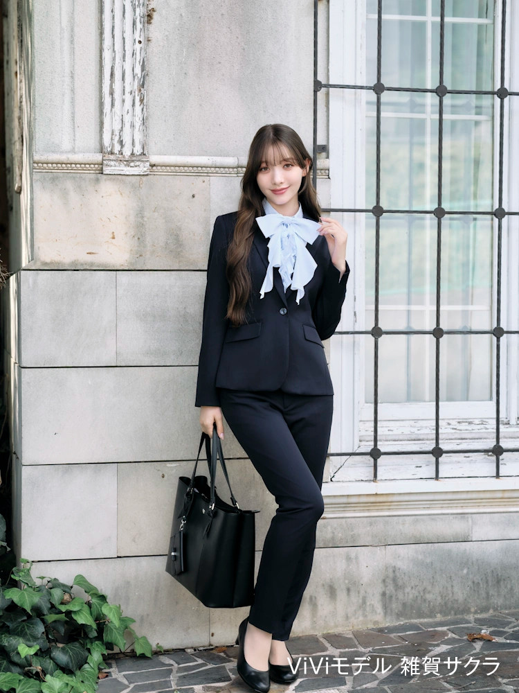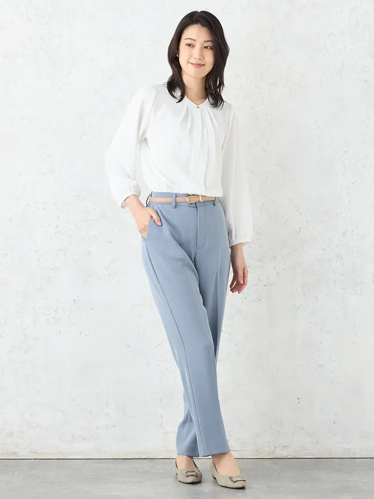 ウエストバックゴム仕様で、動きやすさと品格を兼備した一着です。