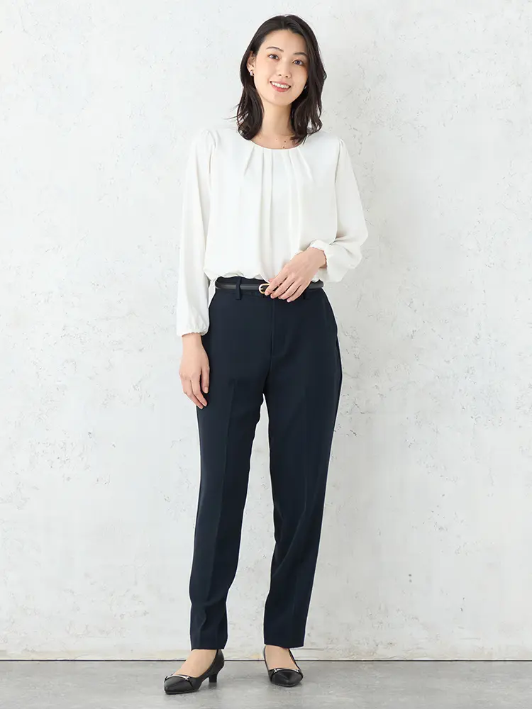 袖口のバルーンデザインが女性らしく柔らかな印象を演出し、オフィスからセレモニーまで幅広く活躍します。