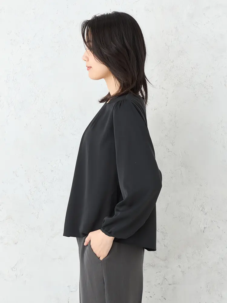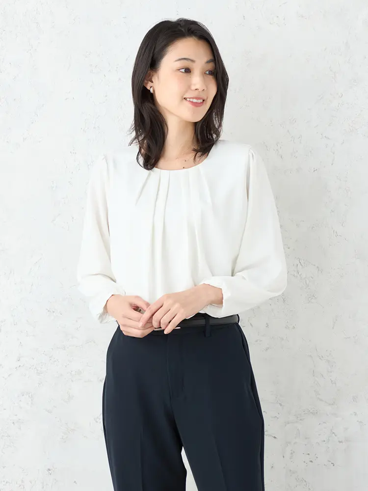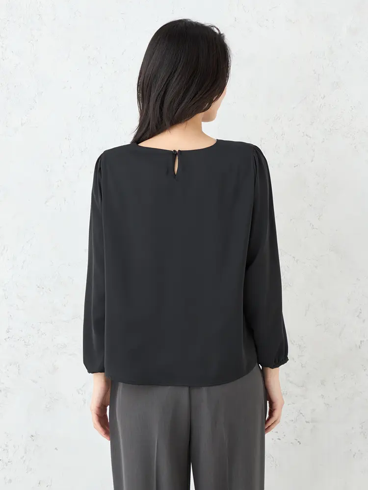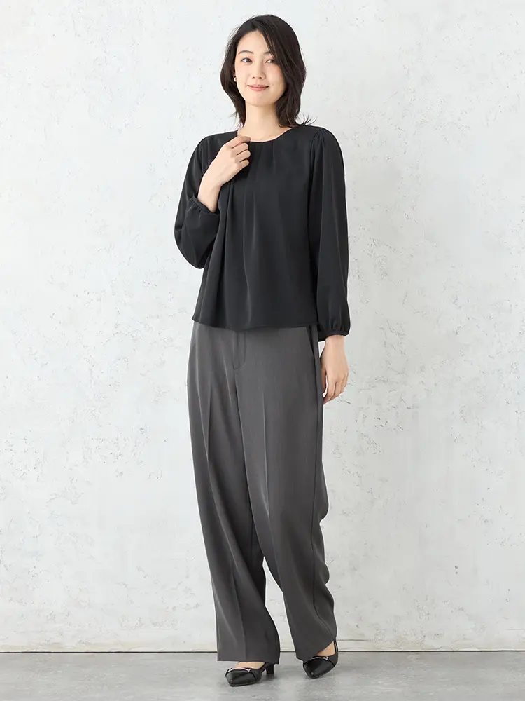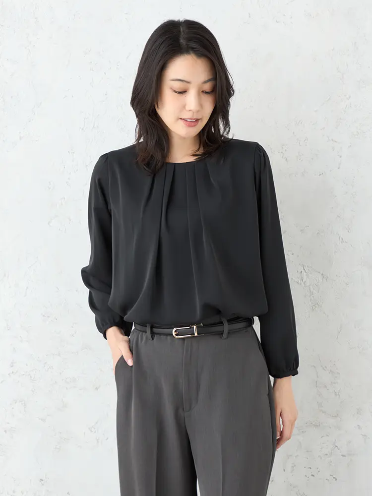 【SOFFICE】2枚仕立てフロントタックブラウス カットソー 長袖プルオーバー ソフィーチェ 消臭加工 ウォッシャブル 通年 【レディース】(ブラック)