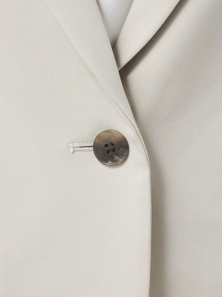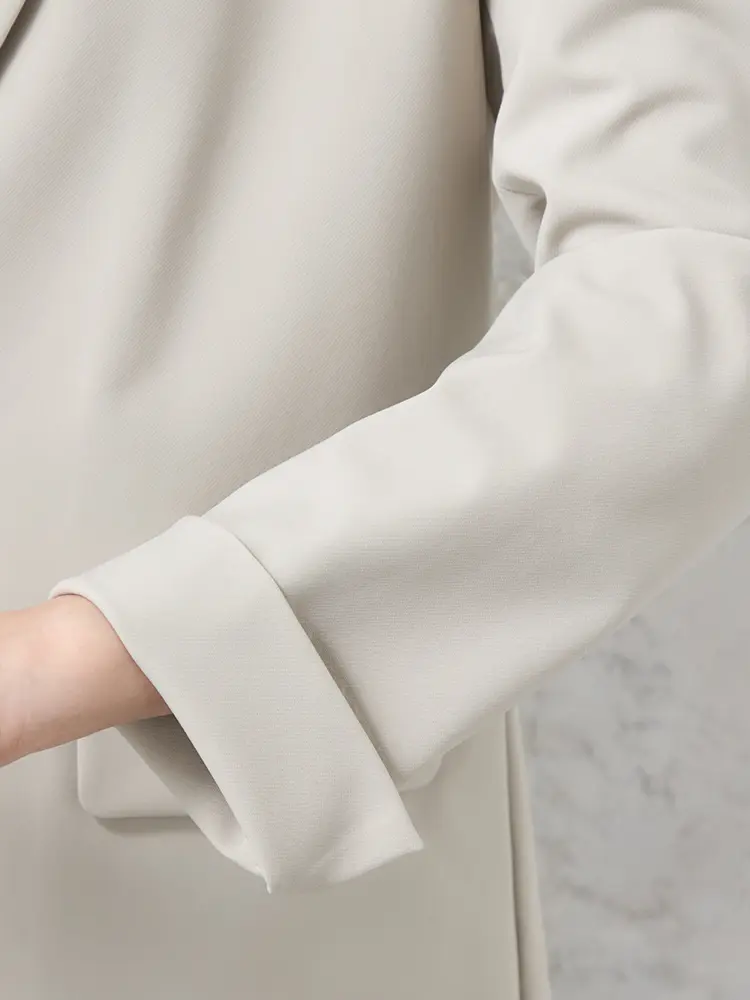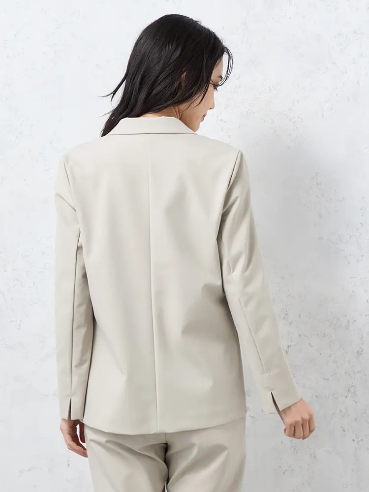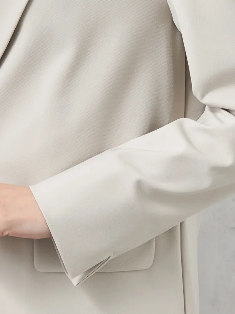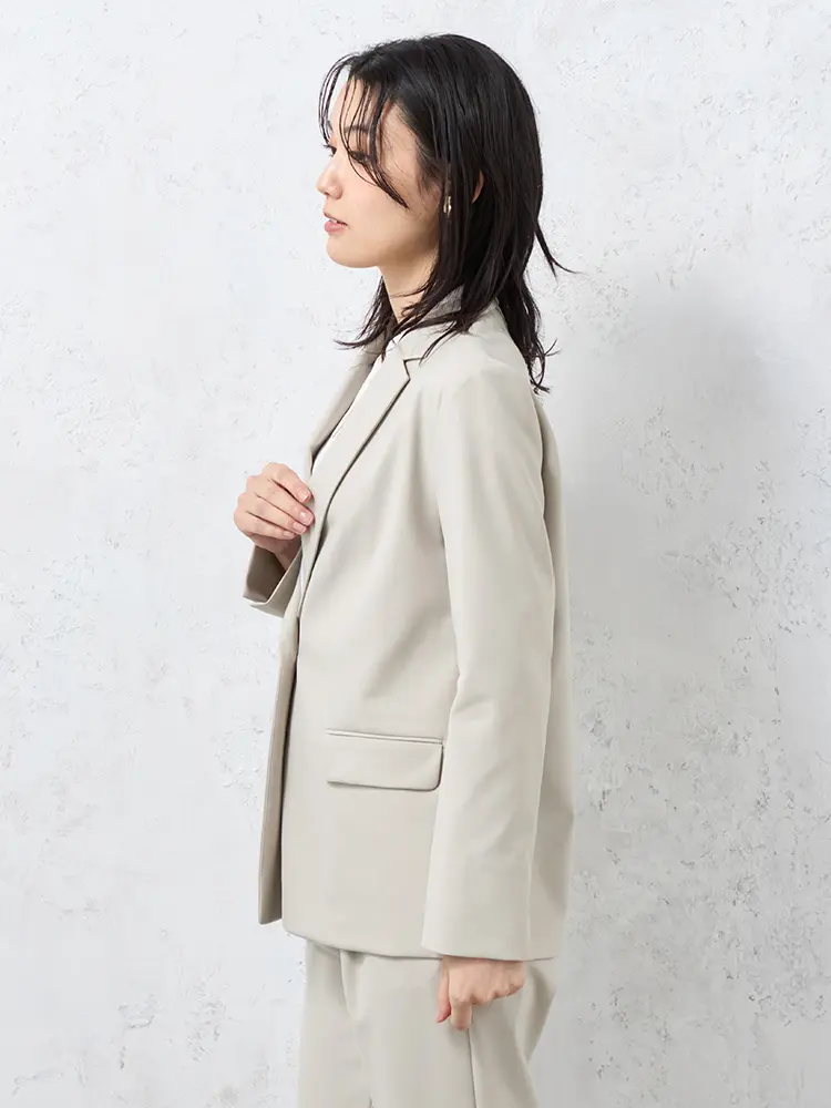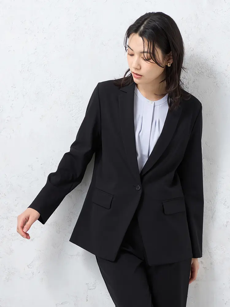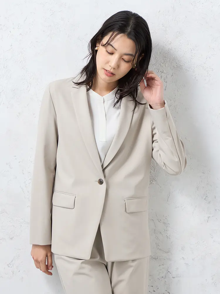 自宅で洗えるウォッシャブル仕様と、小さめのラペルが女性らしさを添える、旬の一着です。