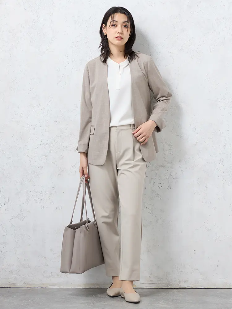 半裏仕立ての軽やかな着心地と、2WAYストレッチ素材で一日中快適に過ごせます。