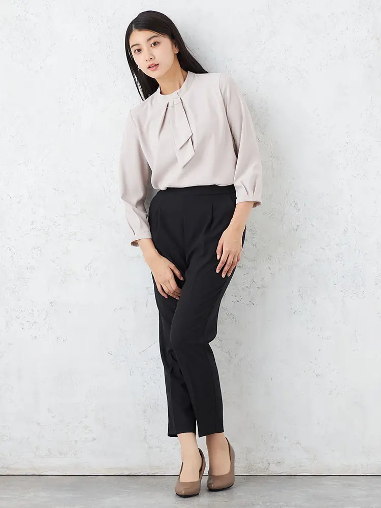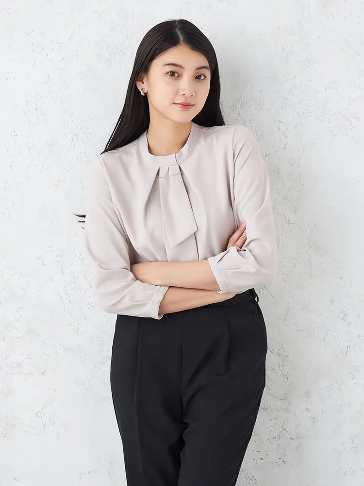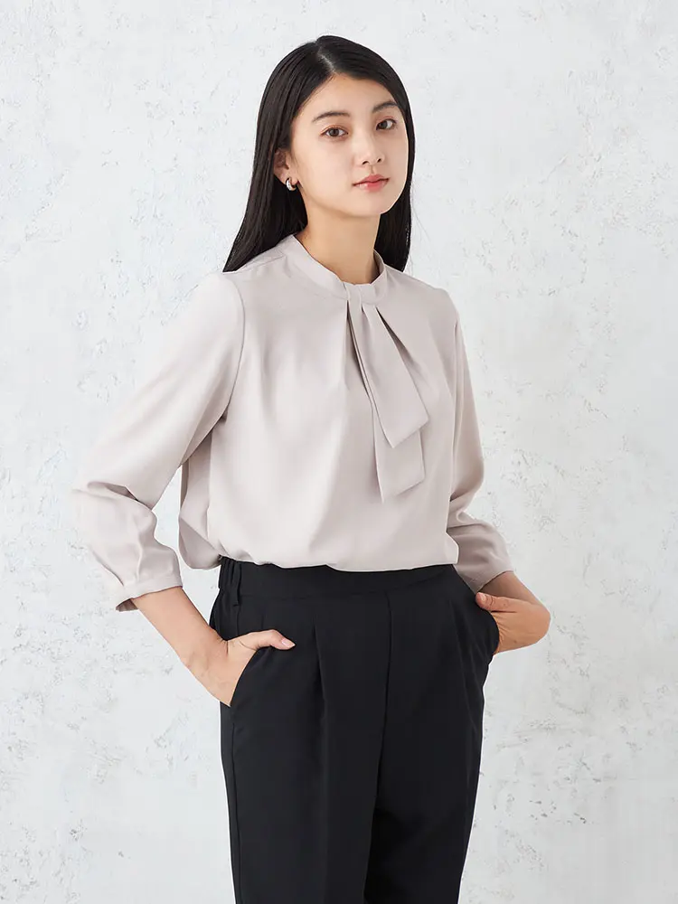 顔まわりを華やかに演出する、ボウタイ付きの7分袖ブラウス。