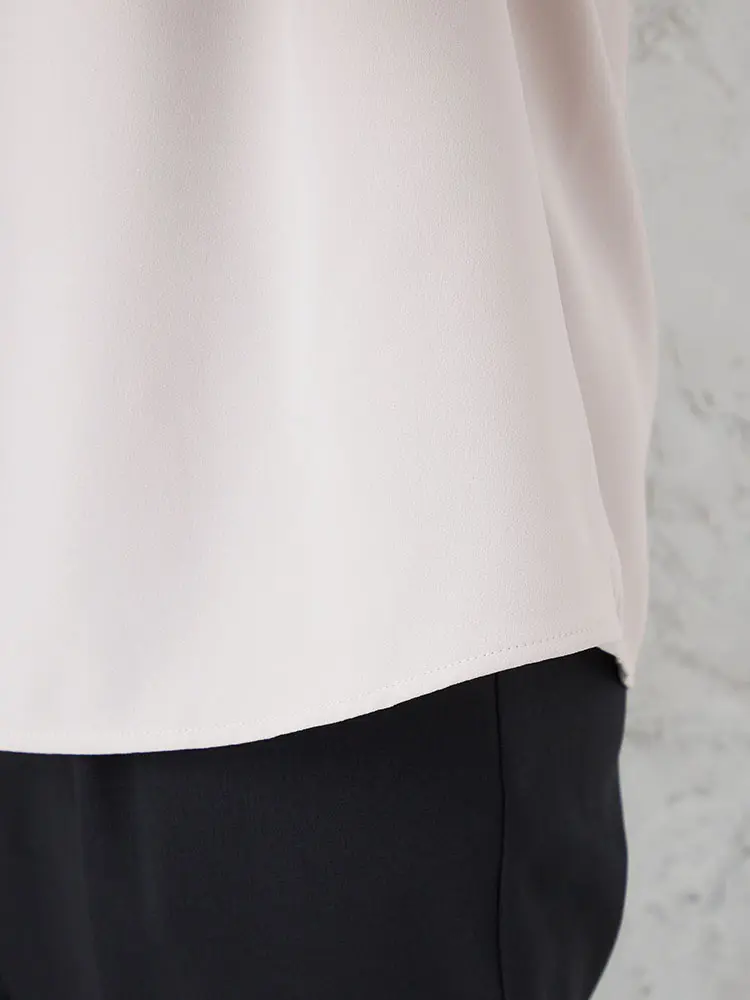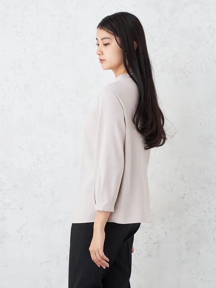 透けすぎないソフトタッチなジョーゼット生地を使用し、上品で好印象な佇まいに仕上げました。