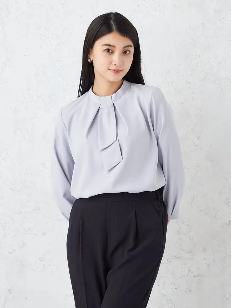 【SOFFICE】 2WAYアクセ付きスタンドカラーボウタイブラウス カットソー ソフィーチェ 通年 【レディース】(S.ブルー)