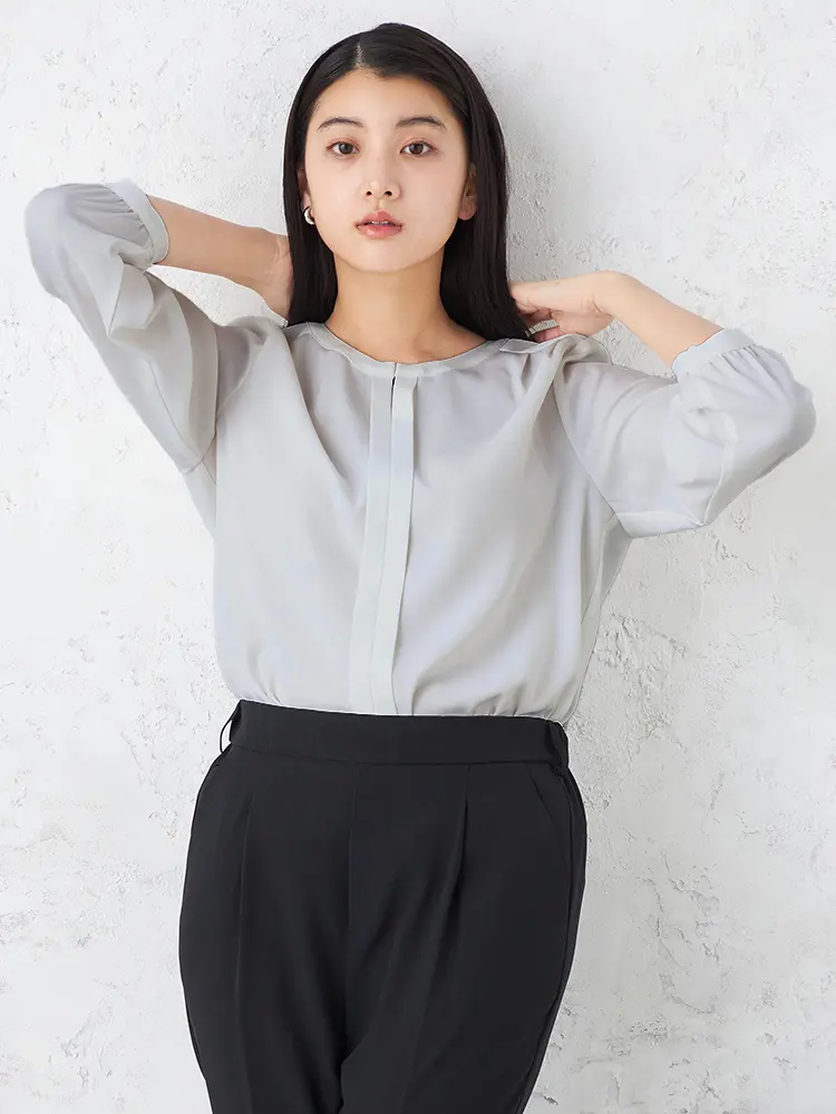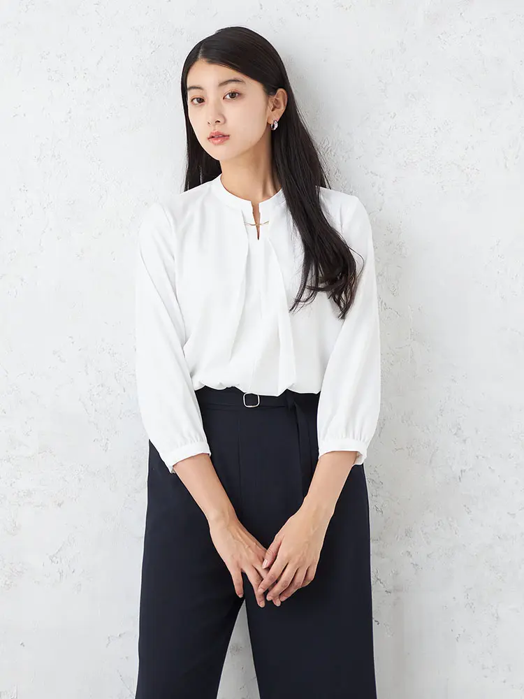 オフィスからセレモニーまで幅広く活躍する、7分袖の正統派ブラウス。