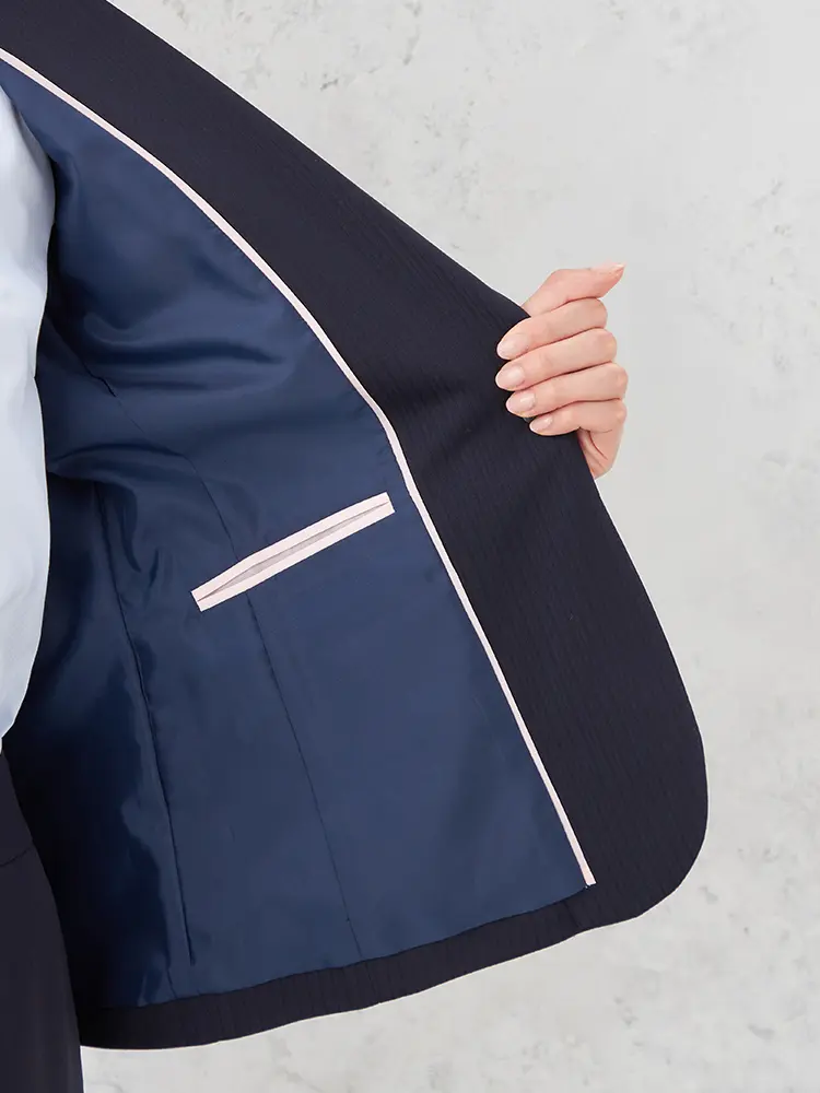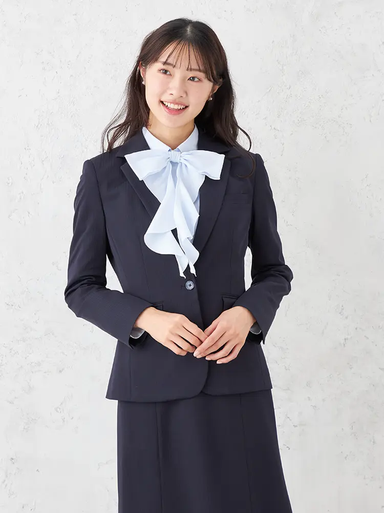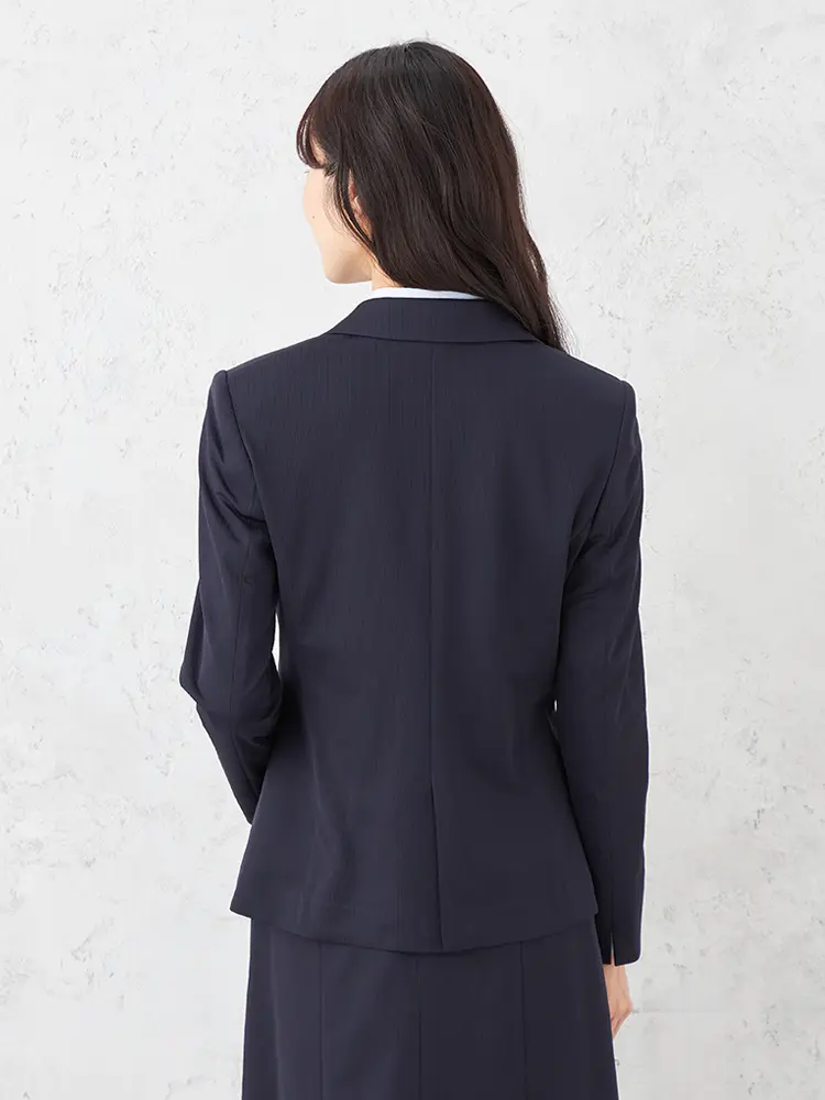 【ViVi】 ネイビーニットウォッシャブル 1つボタン ジャケット ビジネス シャドウストライプ 上下ウォッシャブル 通年