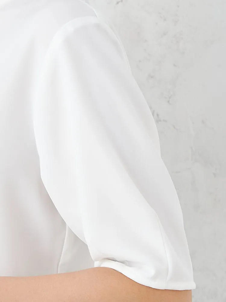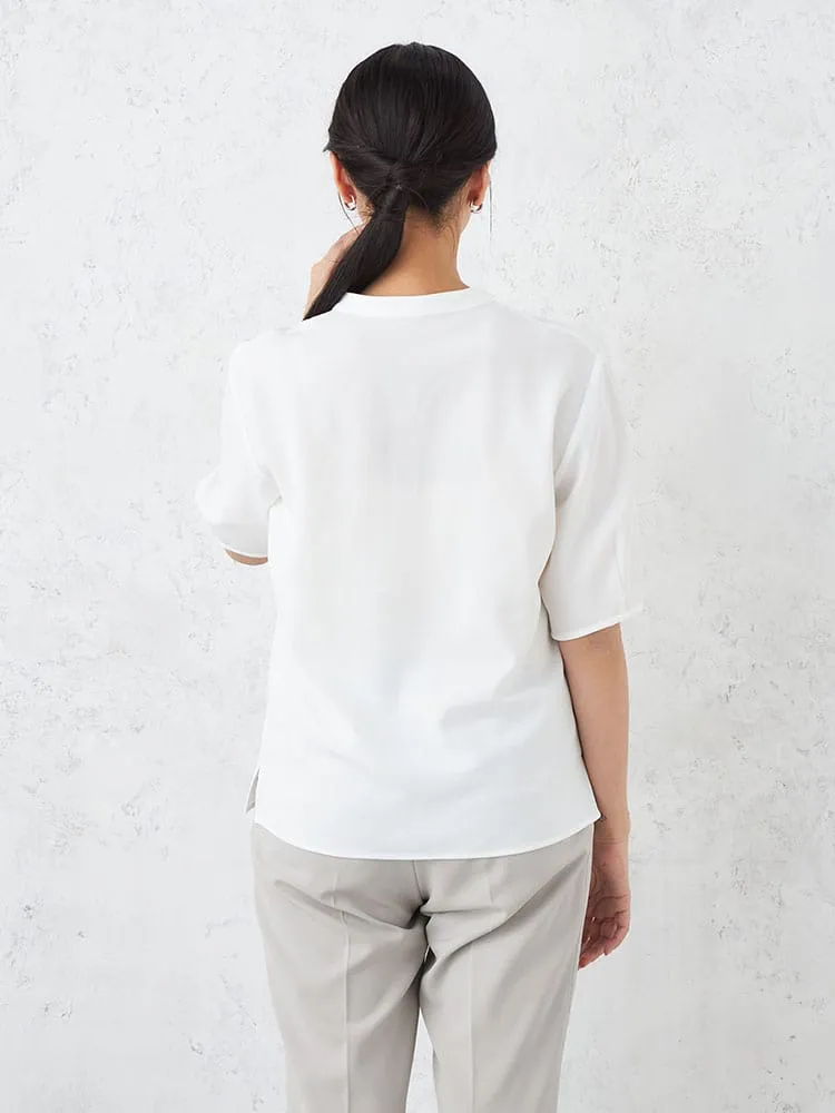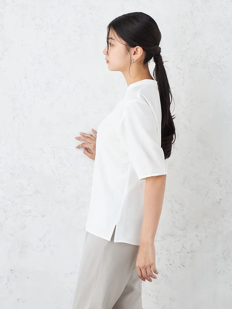 【INDIVI】 キーネック 半袖ブラウス カット半袖プルオーバ ウォッシャブル 春夏【レディース】(オフホワイト)