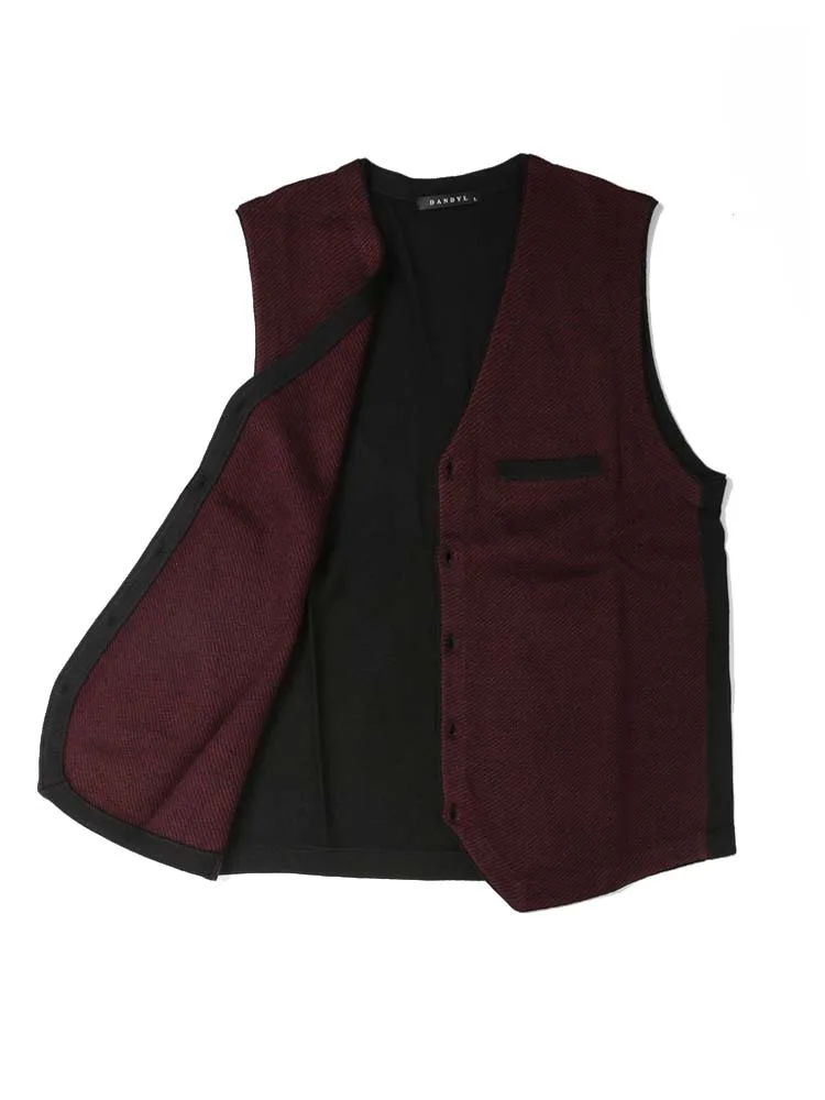 前身ごろをニット地で切り替えた、ビジネスやカジュアルなどシーンを選ばないシンプルデザインのニットジレ。
