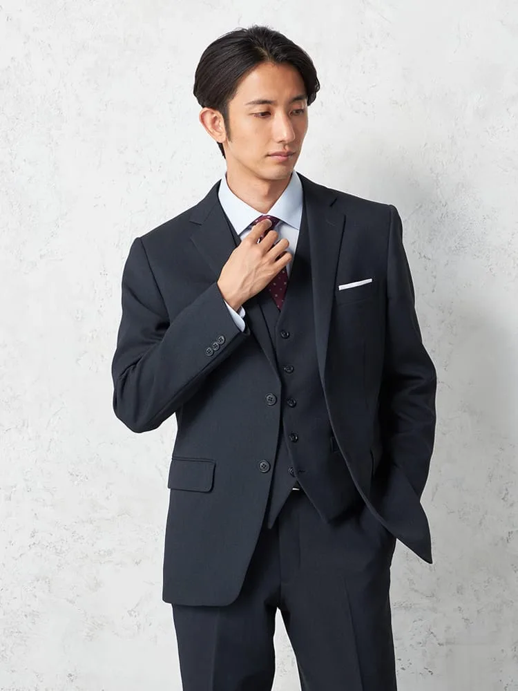 【即納】スリーピーススーツ2つボタン【WEB限定】上下ウォッシャブル小柄ネイビー秋冬