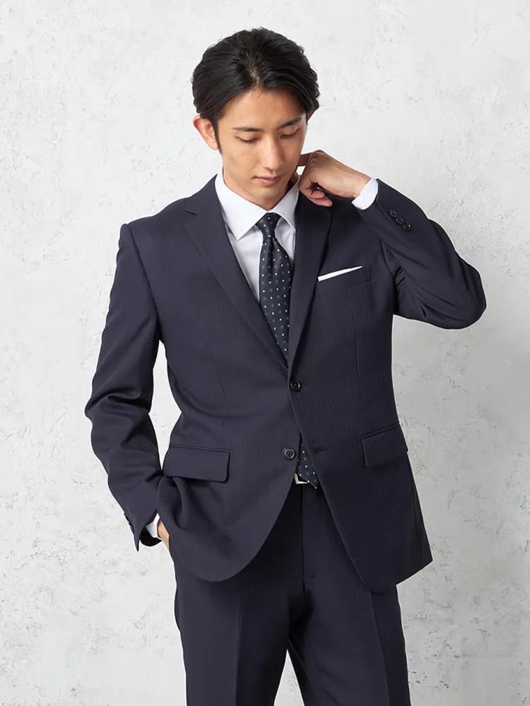 【即納】スーツ2つボタン【WEB限定】上下ウォッシャブルネイビーストライプ