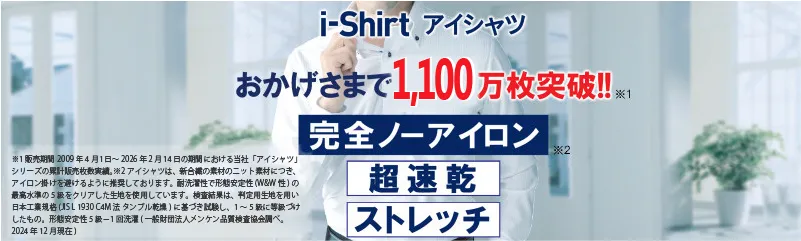 i-Shirt(アイシャツ)は「洗ったらアイロン掛け」というワイシャツの常識を変える完全ノーアイロンシャツです。