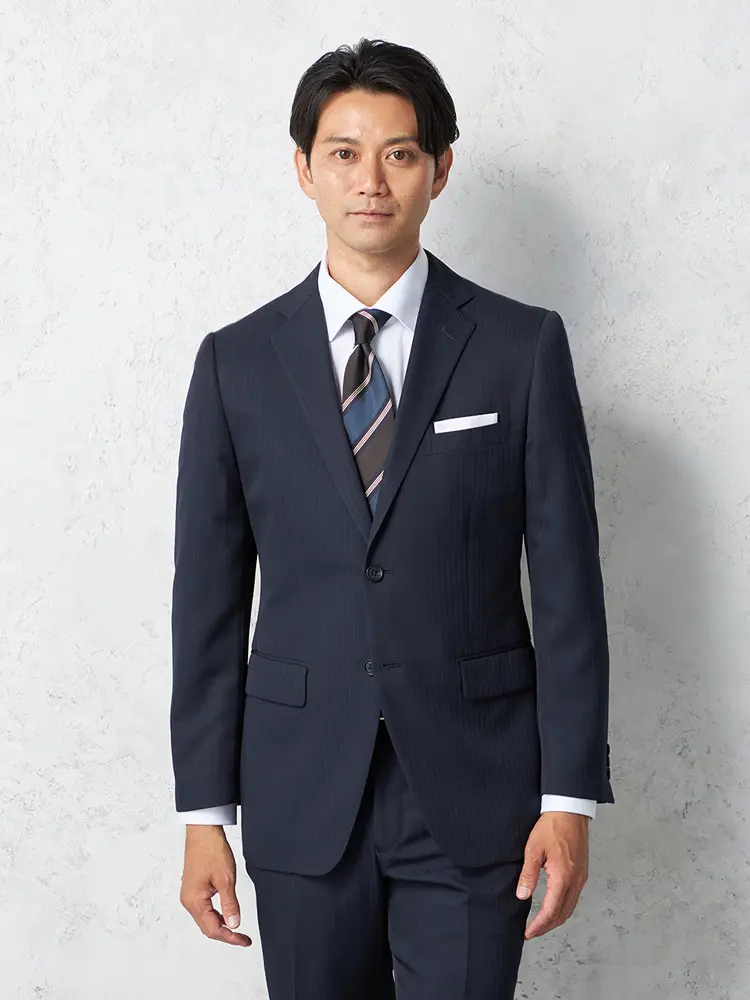 シャツやネクタイを変えて、着回ししやすい王道カラーが使いやすいアイテムです。