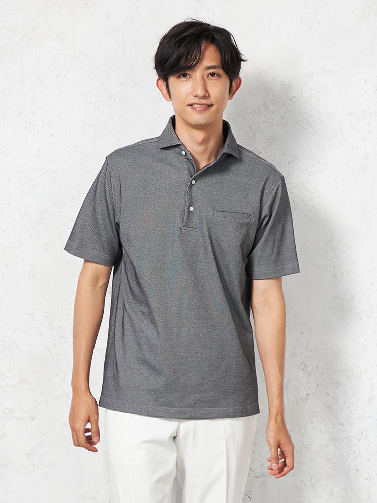 【KATHARINE E HAMNETT-キャサリン・イー・ハムネット-】半袖 ポロシャツ ビズポロ ボタンダウン 無地 春夏(ブラック)