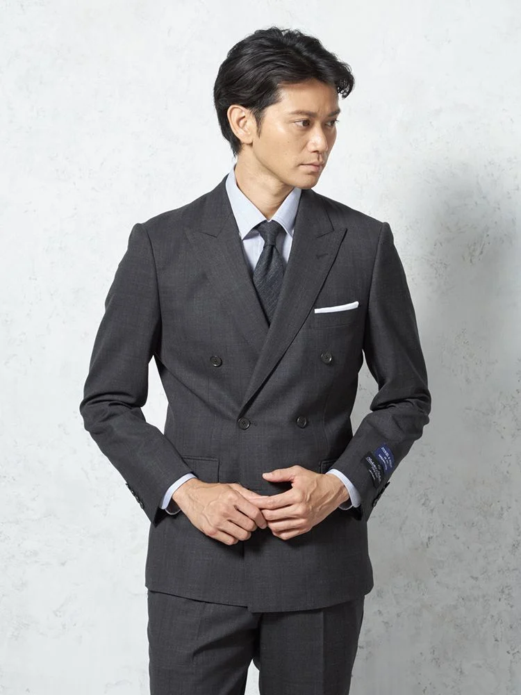 【ストレッチ】スーツダブルキュプラ裏地グレンチェックS&MBLUELABEL秋冬