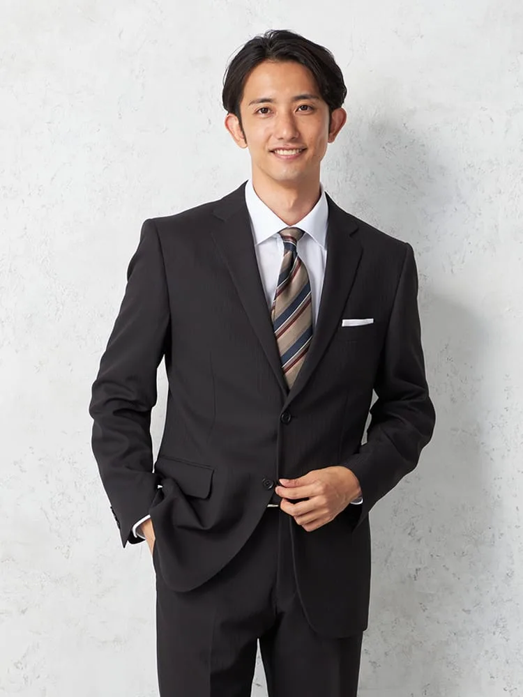 【即納】スーツ2つボタン【WEB限定】上下ウォッシャブルブラックストライプ