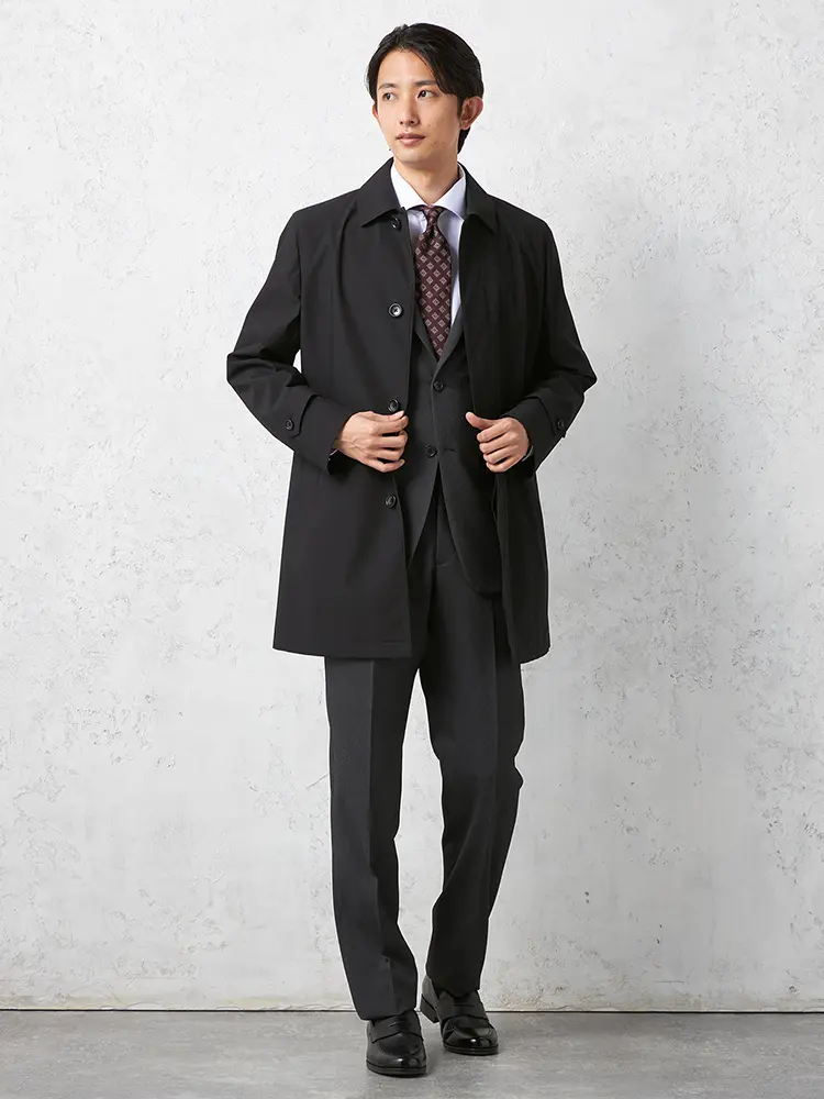 スーツの上から羽織れる仕立ては冬のビジネスに最適です。