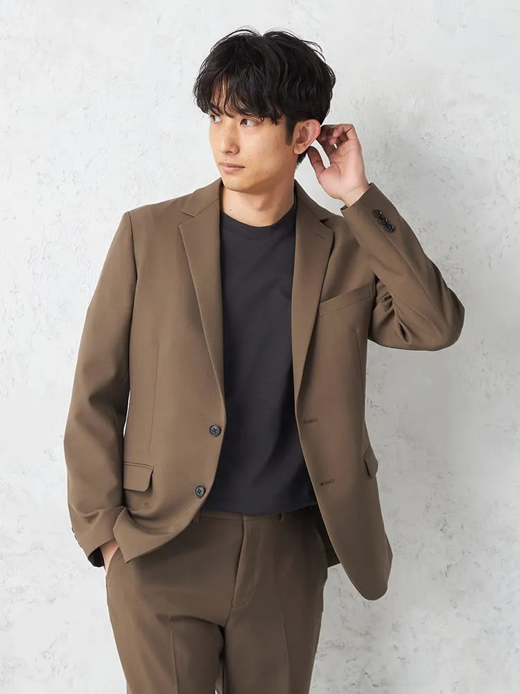 ビジネスにもカジュアルシーンにも活躍し、同生地のパンツを合わせるとセットアップスーツとしても楽しめます。