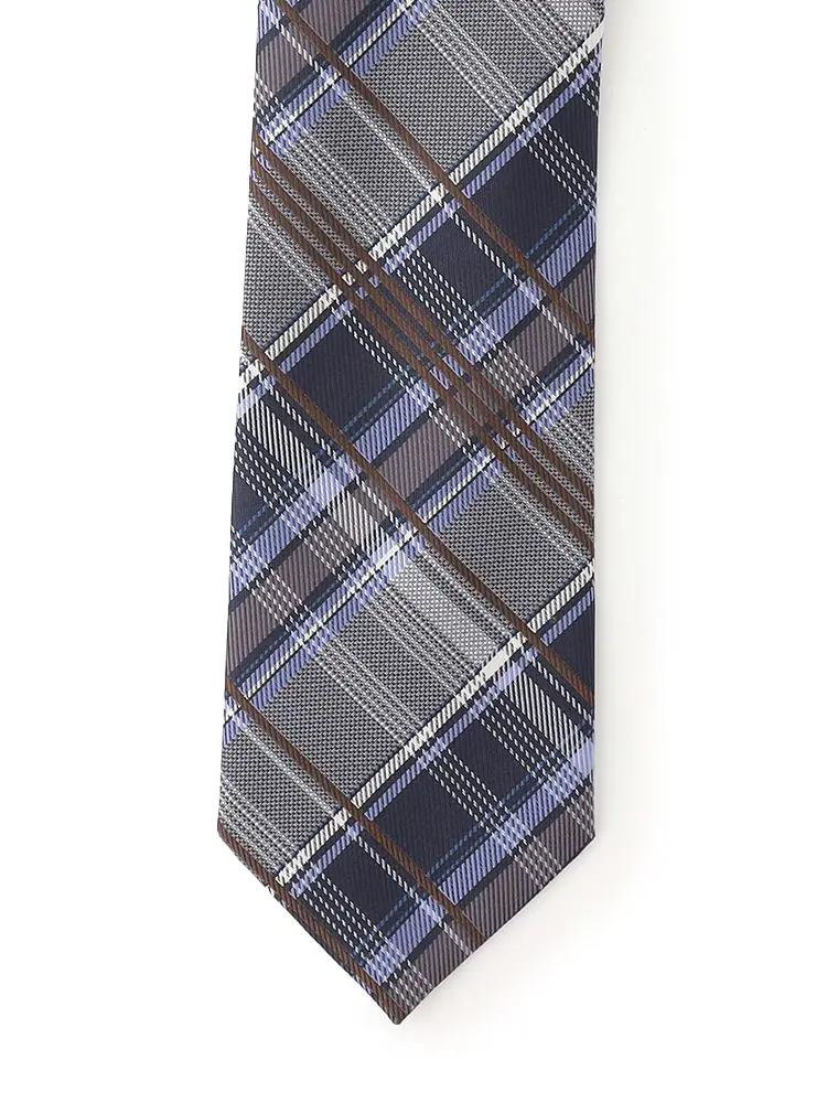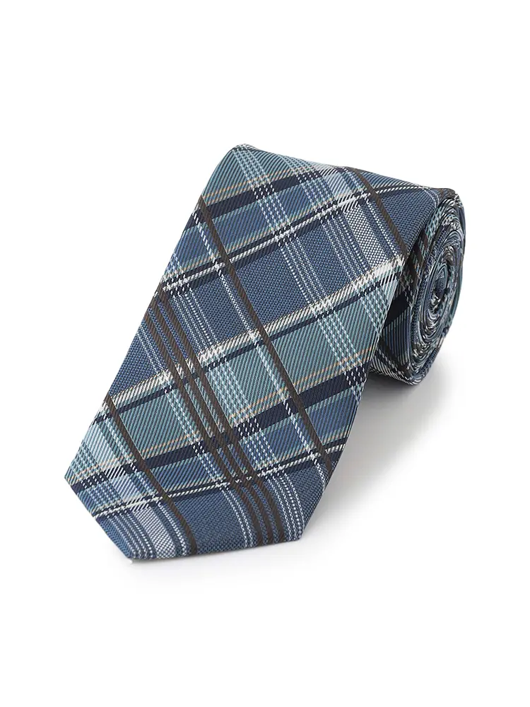 親しみやすさを感じる、チェック柄のネクタイ。