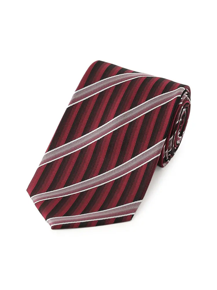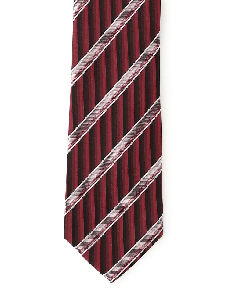 【カンサイヤマモトオム】シルクネクタイ ストライプ 秋冬(ワイン)
