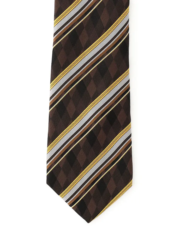 【カンサイヤマモトオム】シルクネクタイ ストライプ 秋冬(ブラウン)