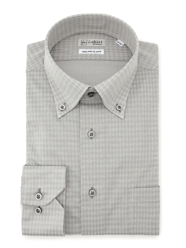 【アイシャツ】長袖Yシャツボタンダウンチェック吸汗速乾ストレッチ形態安定通年