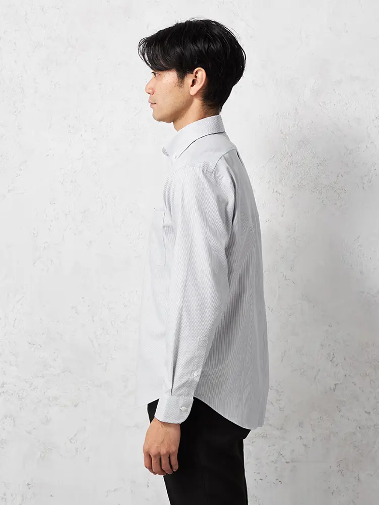 ワードローブにそろえておきたい、毎日のビジネススタイルにぴったりな長袖ボタンダウンシャツです。