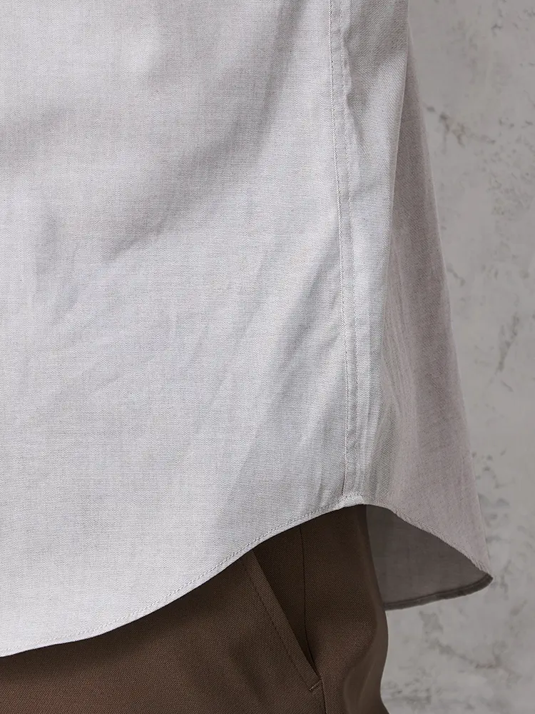 さりげないおしゃれ感を演出する、襟が大きく開いた長袖カッタウェイシャツです。