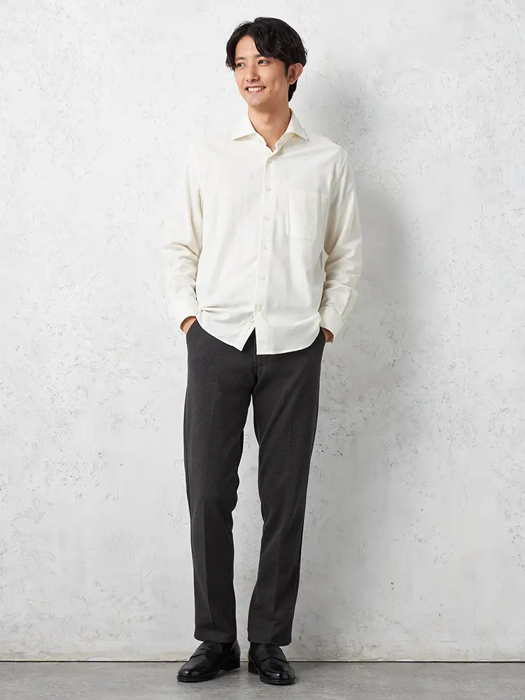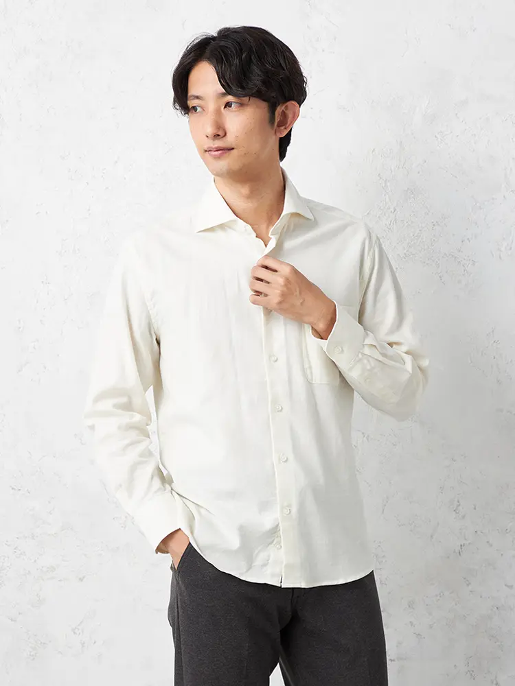清潔感のあるオフホワイトカラーの前開きシャツ。