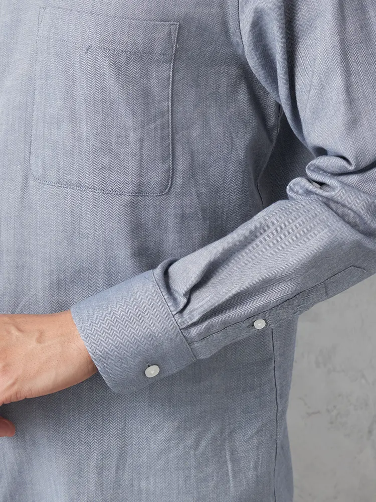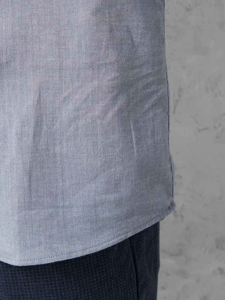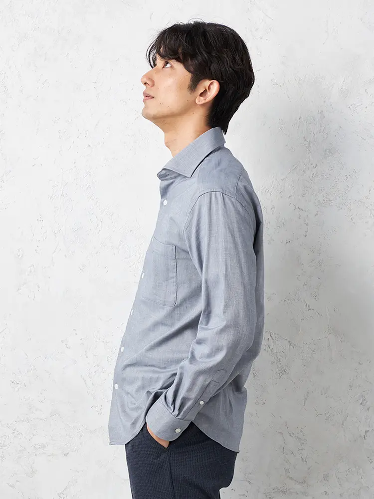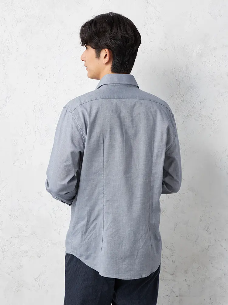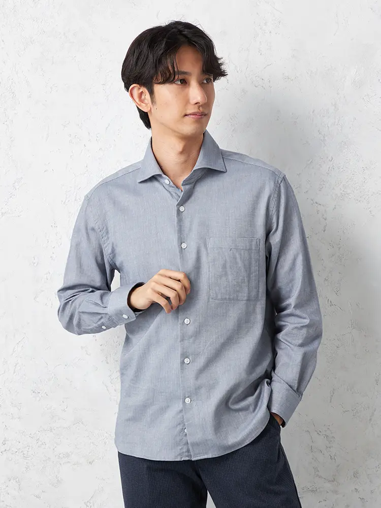 【RUCKENBACCHAR】 へリンボン ホリゾンタルカラー ビジカジシャツ 長袖Yシャツ 通年(M.グレー)