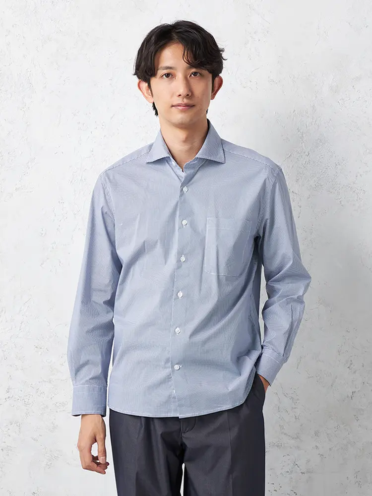 【形態安定】長袖ワイシャツカッタウェイアイスランドブルーシリーズ吸水速乾nero通年
