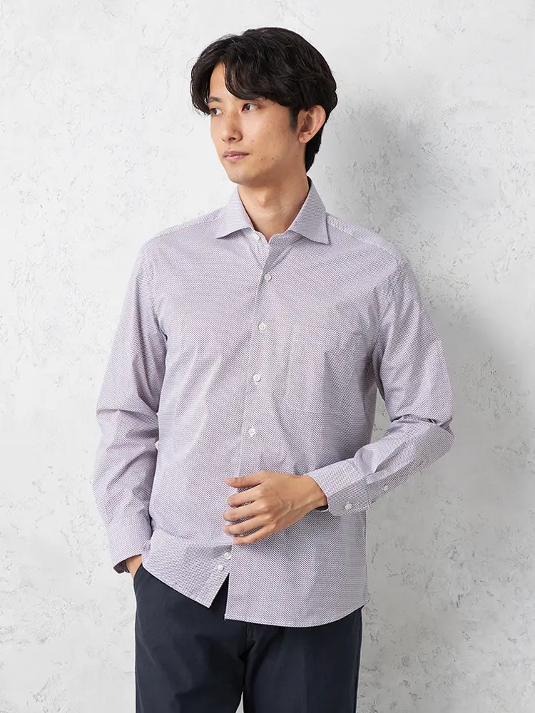 【ハイブリッドアイシャツ】長袖ワイシャツカッタウェイ綿混素材形態安定織柄無地通年