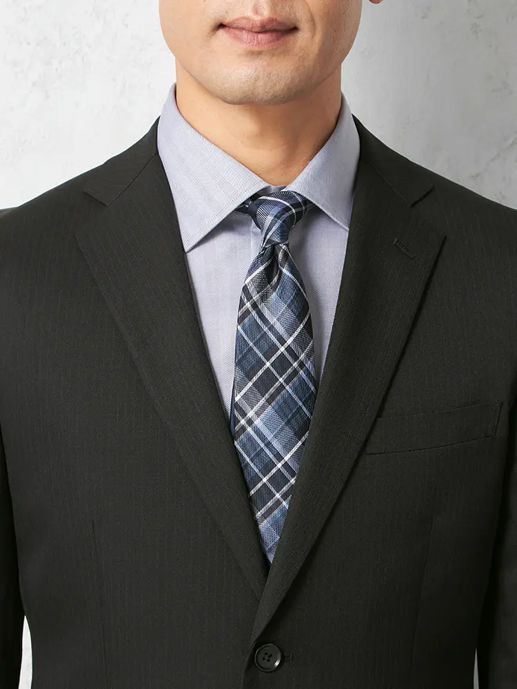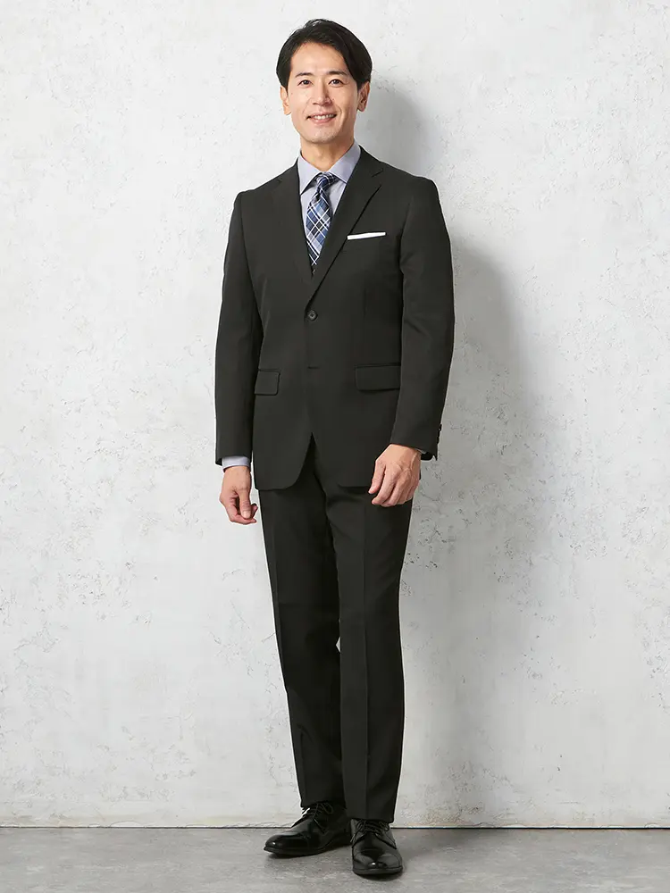 【即納】スーツ2つボタン【WEB限定】4WAYストレッチ織柄チャコールグレー通年