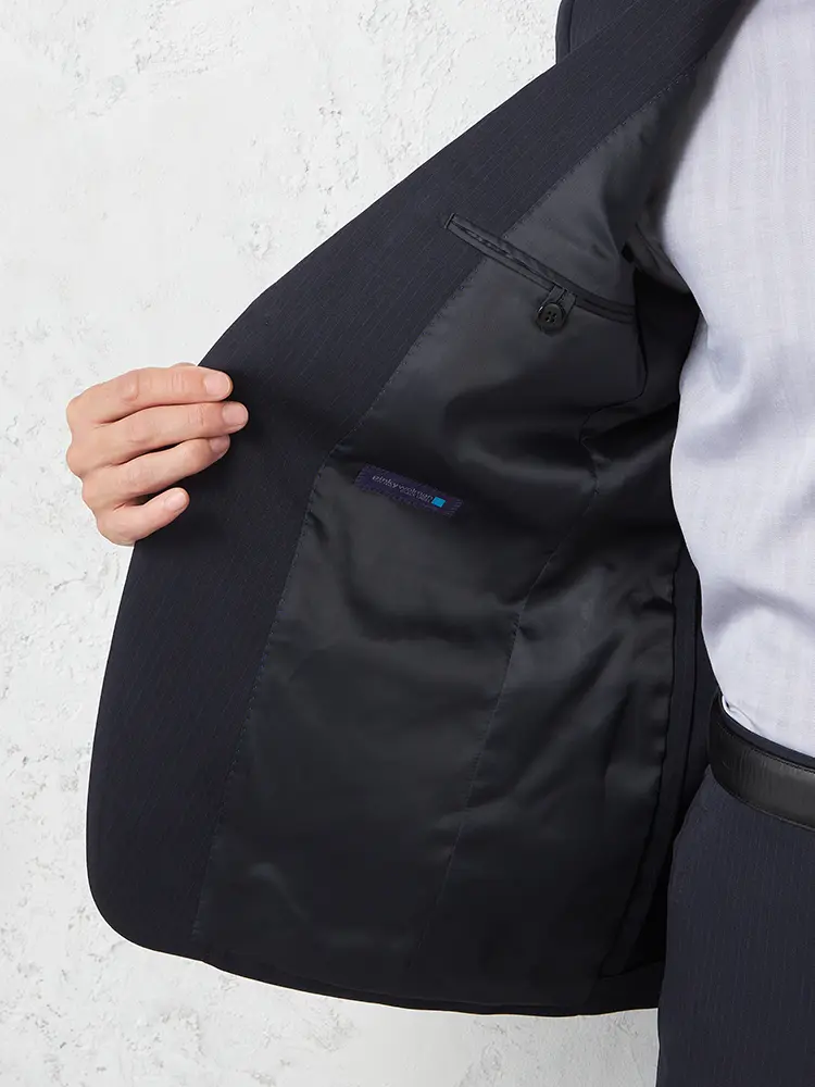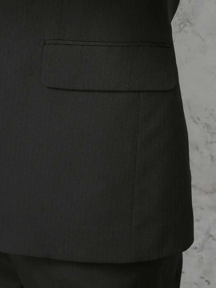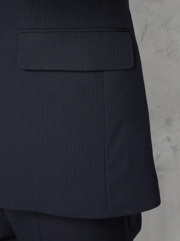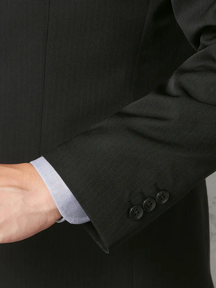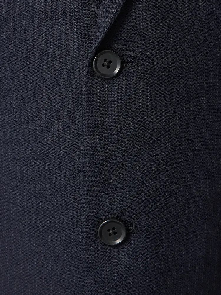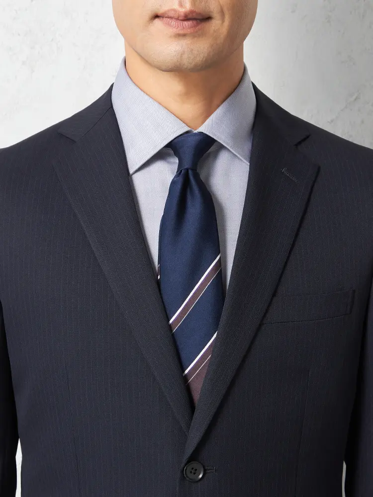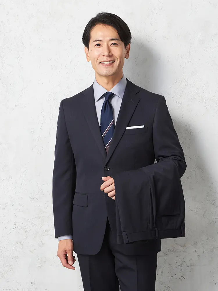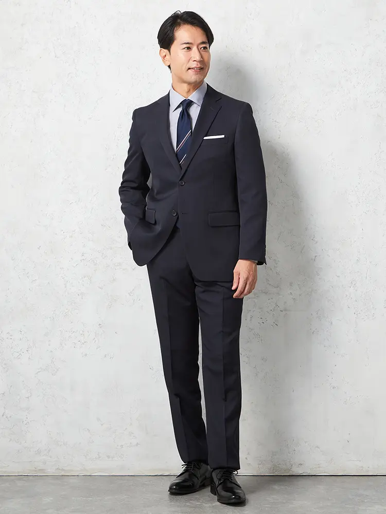 上品なシャドーストライプの入ったベーシックな2つボタンスーツ。