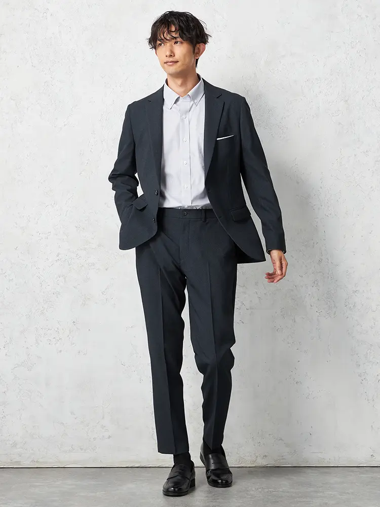 【TOKYO RUN】 セットアップ ジャケット 2つボタン ウォッシャブル ストレッチ 通年(ネイビー)