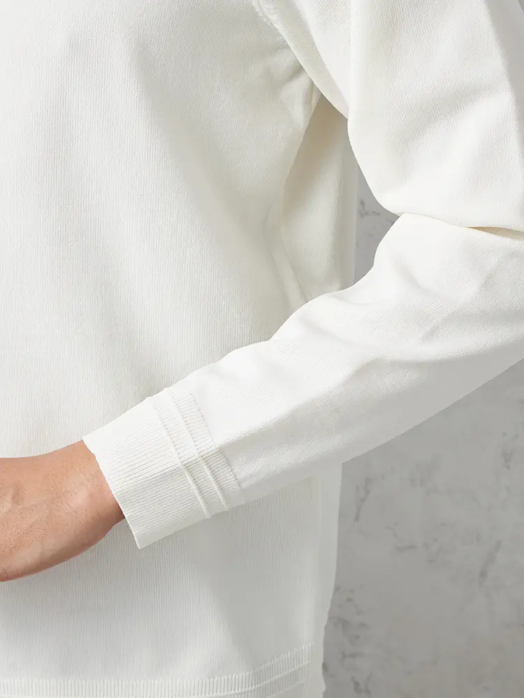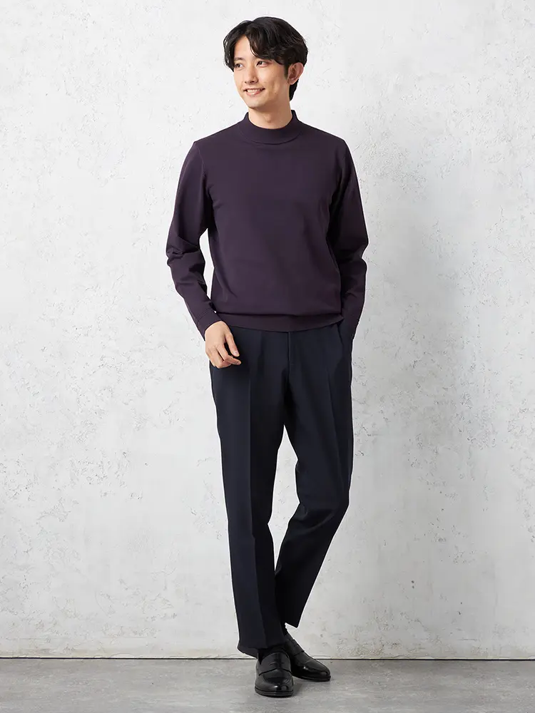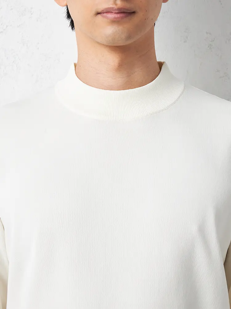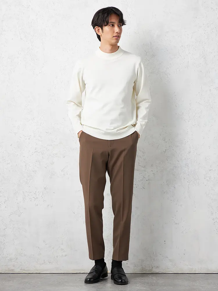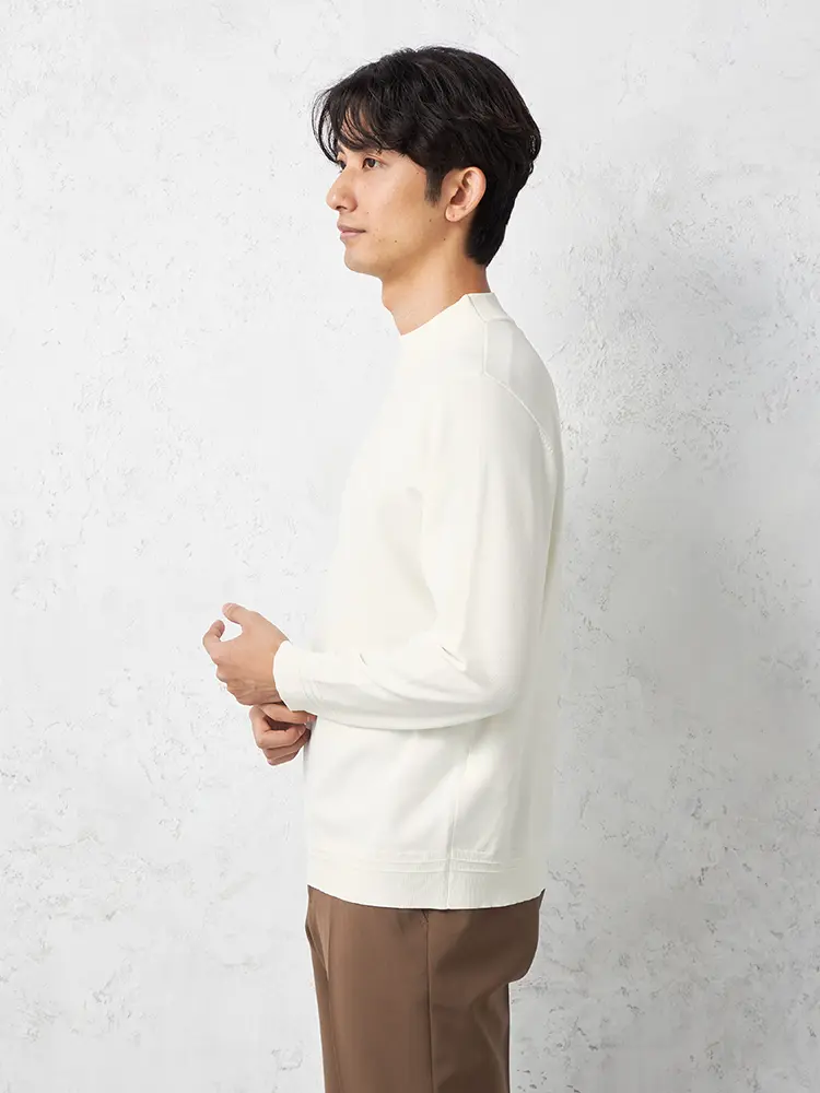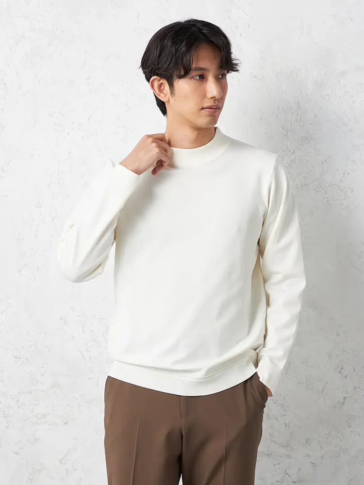 首元のつまり具合がほどよいモックネックで、上品な佇まいに仕上げました。