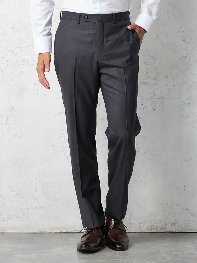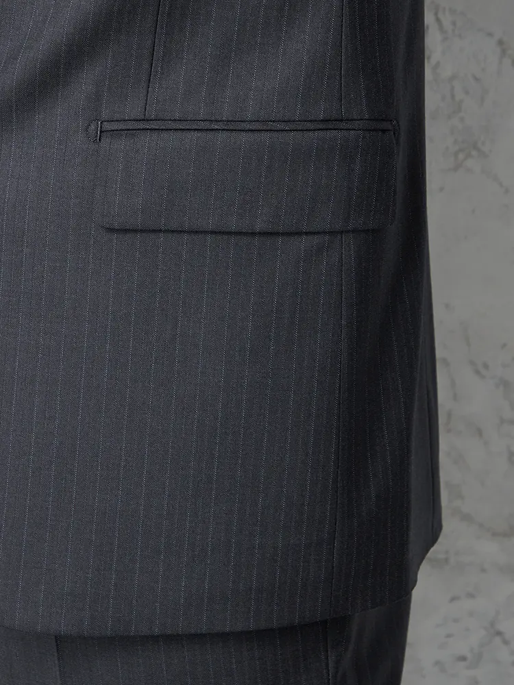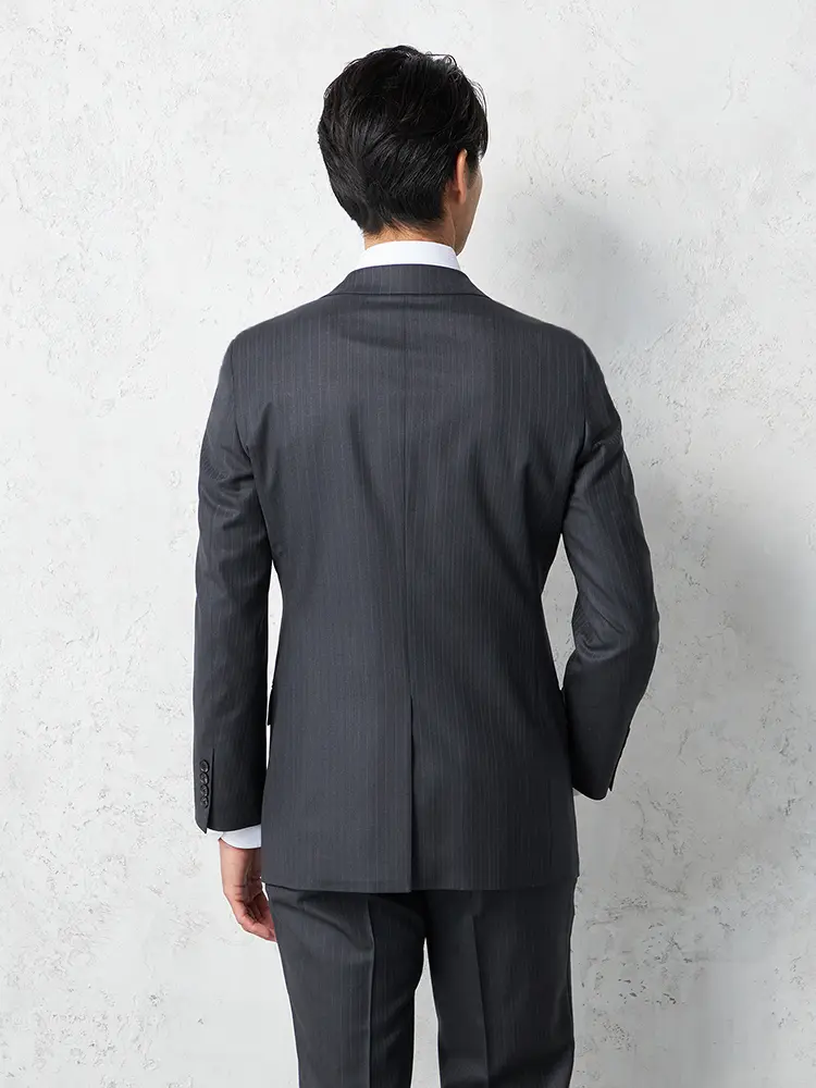 【即納】スーツ2つボタン【WEB限定】4WAYストレッチストライプチャコールグレー通年